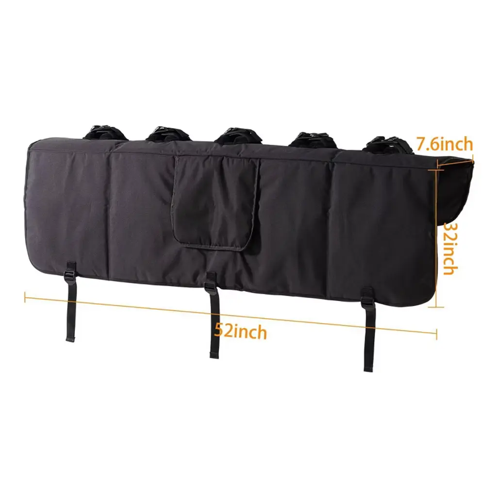 Introducing the LUGO 52" Outdoor Wide Tailgate Pad for Bikes, the ultimate solution for securely and conveniently transporting bikes in pickup trucks. Engineered for durability, this tailgate pad provides a dependable and protective platform for bikes during transit. Its innovative design features integrated pockets, ensuring bikes fit snugly and are organized without the risk of scratches or damage. The sturdy construction guarantees stability and support for bikes, even on rough terrain. With user-friendly features and simple installation, loading and unloading bikes becomes effortless, allowing to focus on enjoying your outdoor excursions. Whether a passionate mountain biker or someone who loves exploring on two wheels, this tailgate pad is an essential accessory that combines convenience, safety, and peace of mind. Enjoy biking adventures and embark on the road confidently, thanks to the LUGO 52" Outdoor Wide Tailgate Pad for Bikes.