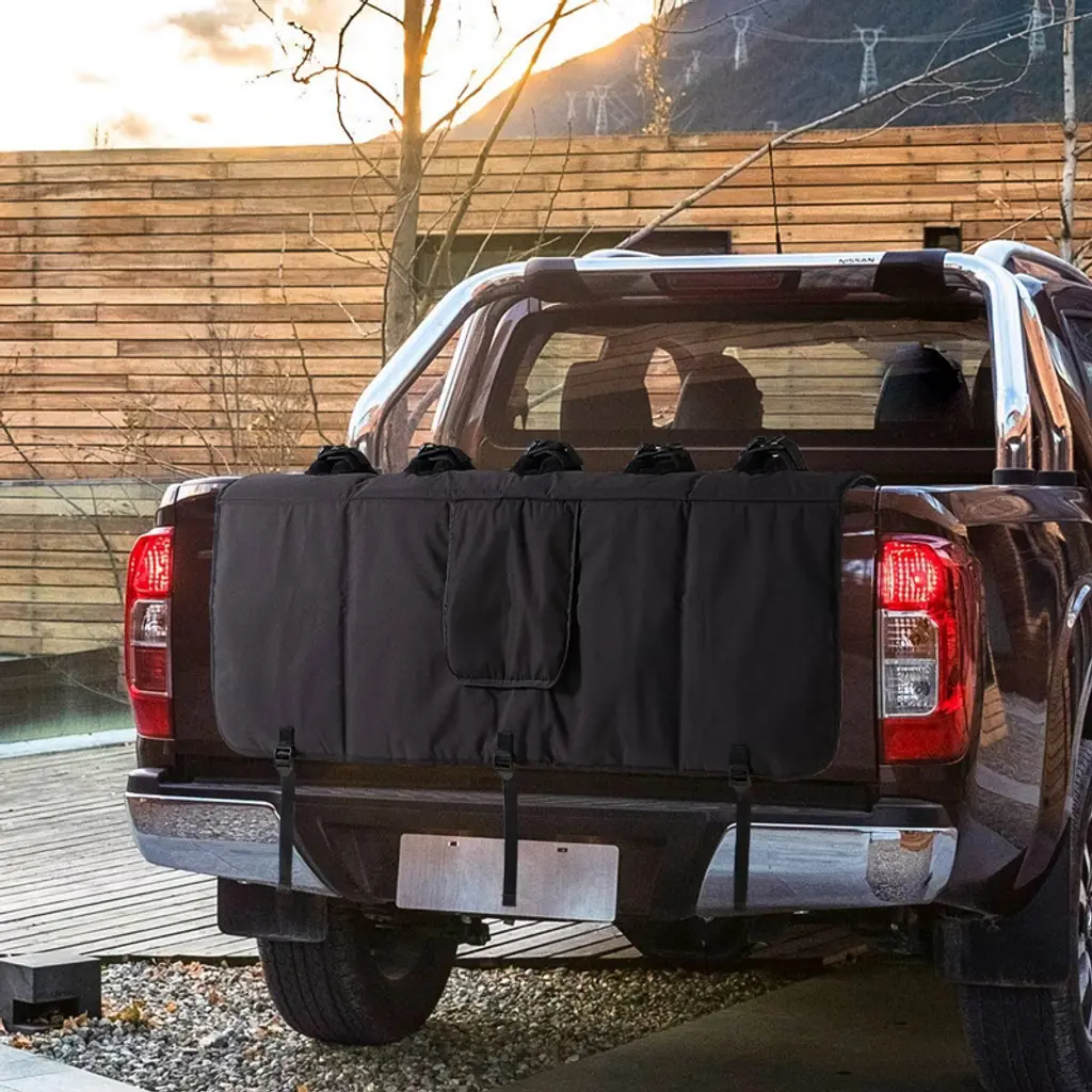Introducing the LUGO 62" Outdoor Wide Tailgate Pad for Bikes, the ultimate solution for securely and conveniently transporting bikes in pickup trucks. Engineered for durability, this tailgate pad provides a dependable and protective platform for bikes during transit. Its innovative design features integrated pockets, ensuring bikes fit snugly and are organized without the risk of scratches or damage. The sturdy construction guarantees stability and support for bikes, even on rough terrain. With user-friendly features and simple installation, loading and unloading bikes becomes effortless, allowing to focus on enjoying your outdoor excursions. Whether a passionate mountain biker or someone who loves exploring on two wheels, this tailgate pad is an essential accessory that combines convenience, safety, and peace of mind. Enjoy biking adventures and embark on the road confidently, thanks to the LUGO 62" Outdoor Wide Tailgate Pad for Bikes.