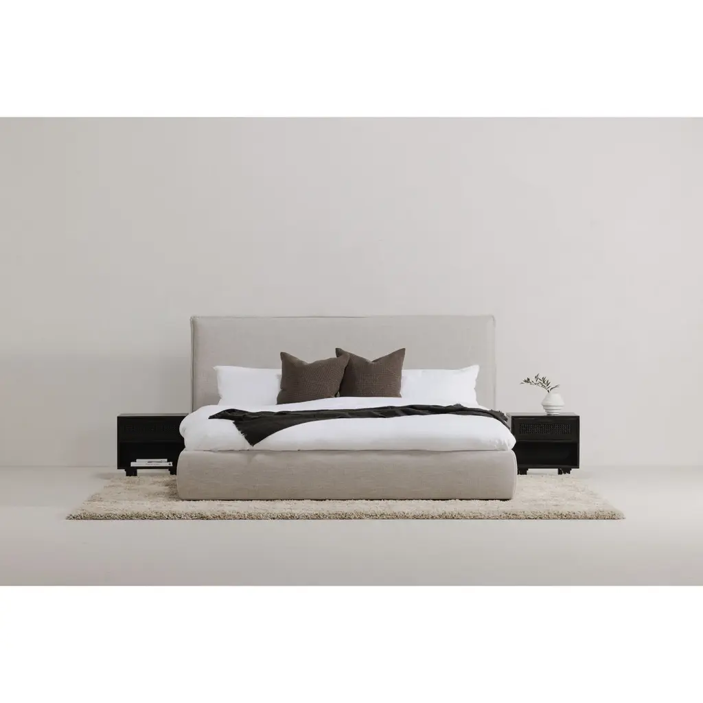 Upholstered from a soft, linen blend fabric, the Luzon Bed is for those who dream of their next beach destination. Its padded headboard and solid pine-poplar mix wood frame makes it comfy and reliable, while its timeless design and neutral tone showcases a classic, utilitarian look.