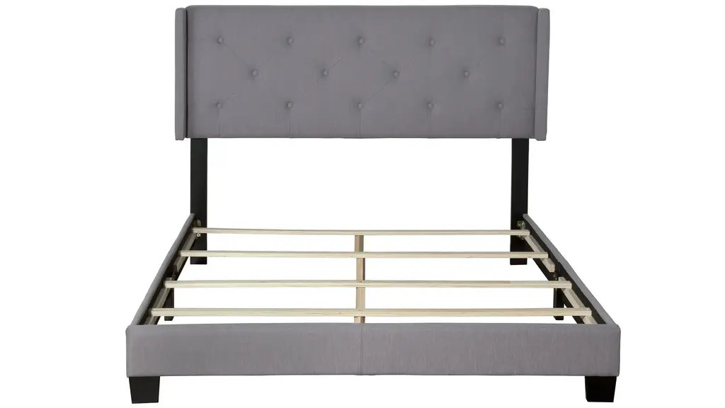 Lyla Upholstered Bed showcases a timeless and elegant design that effortlessly enhances any bedroom decor. Its sleek lines and premium upholstery create a focal point that exudes both comfort and sophistication. Whether your style is modern, classic, or eclectic, our bed in a box seamlessly blends into any aesthetic, making it a versatile choice for various interior themes. The footboard and rails of our bed in a box are crafted with the same attention to detail as the headboard, ensuring a cohesive and harmonious look. The durable construction guarantees stability and longevity, providing you with a reliable and sturdy foundation for years to come. Reinforced joints and high-quality materials are employed to deliver exceptional strength and support, promising a restful night's sleep.