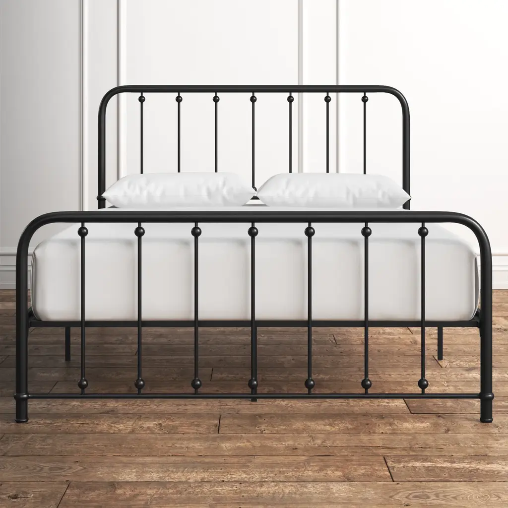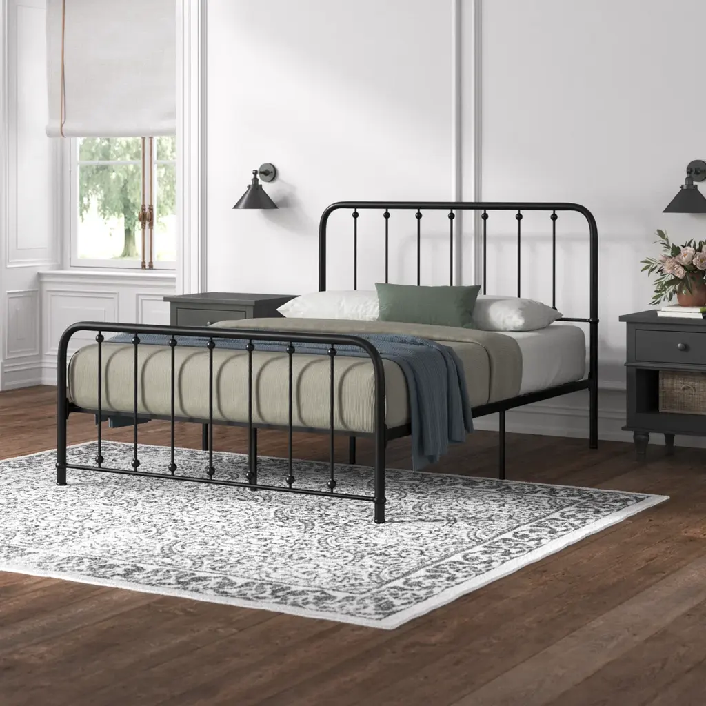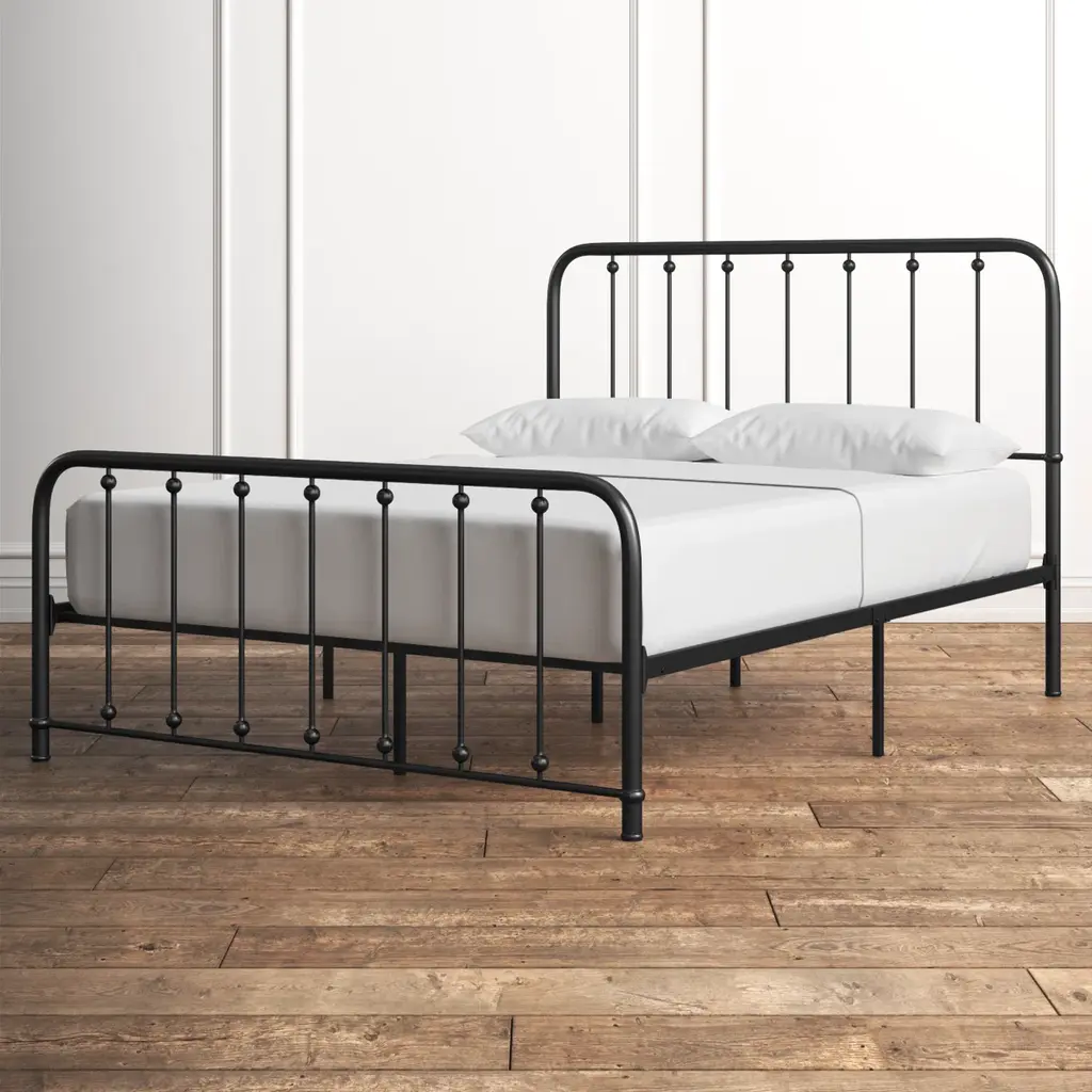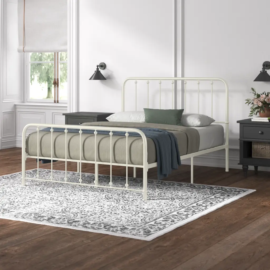 About This Product Ideal for both rustic and understated bedrooms or guest rooms, this stylish platform bed pairs well with almost any neutral color palette. Crafted from metal, it features prominent spindle detailing on the curved head and footboard, giving this bed a classic style that complements a French country or transitional design aesthetic. Capable of holding up to 450 - 500 lbs., this platform bed comes with three center support legs to keep you propped up while you sleep. Add your preferred mattress (sold separately) without the need for a box spring. Hand-curated by Kelly Clarkson.