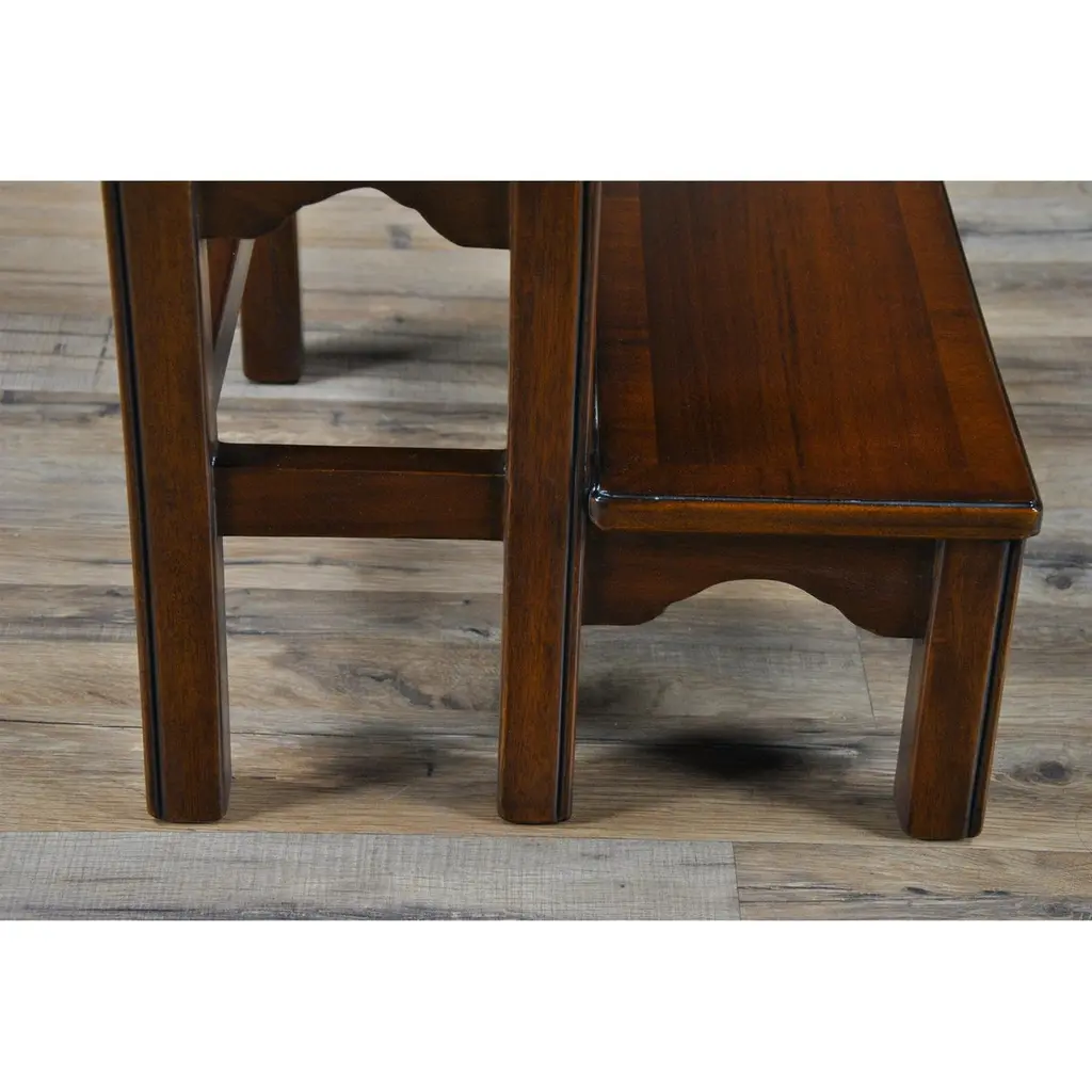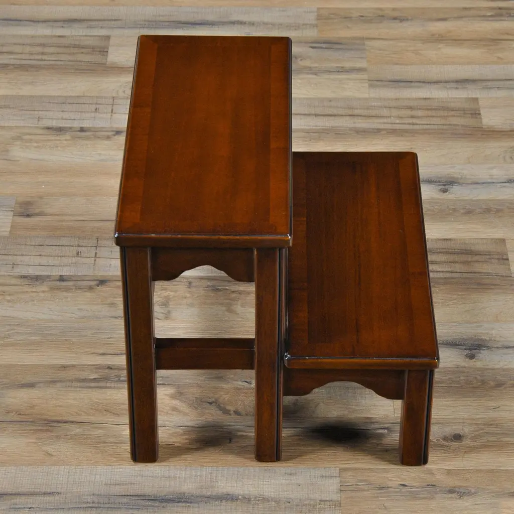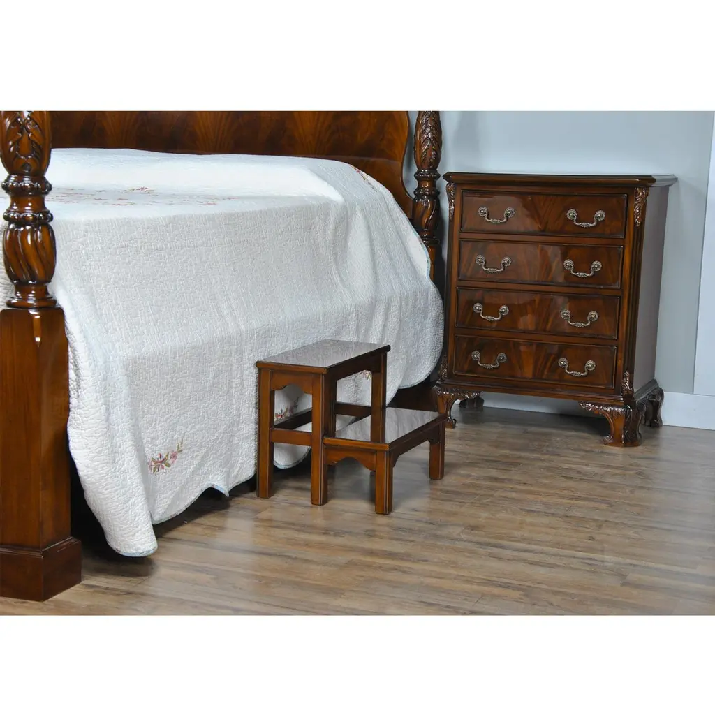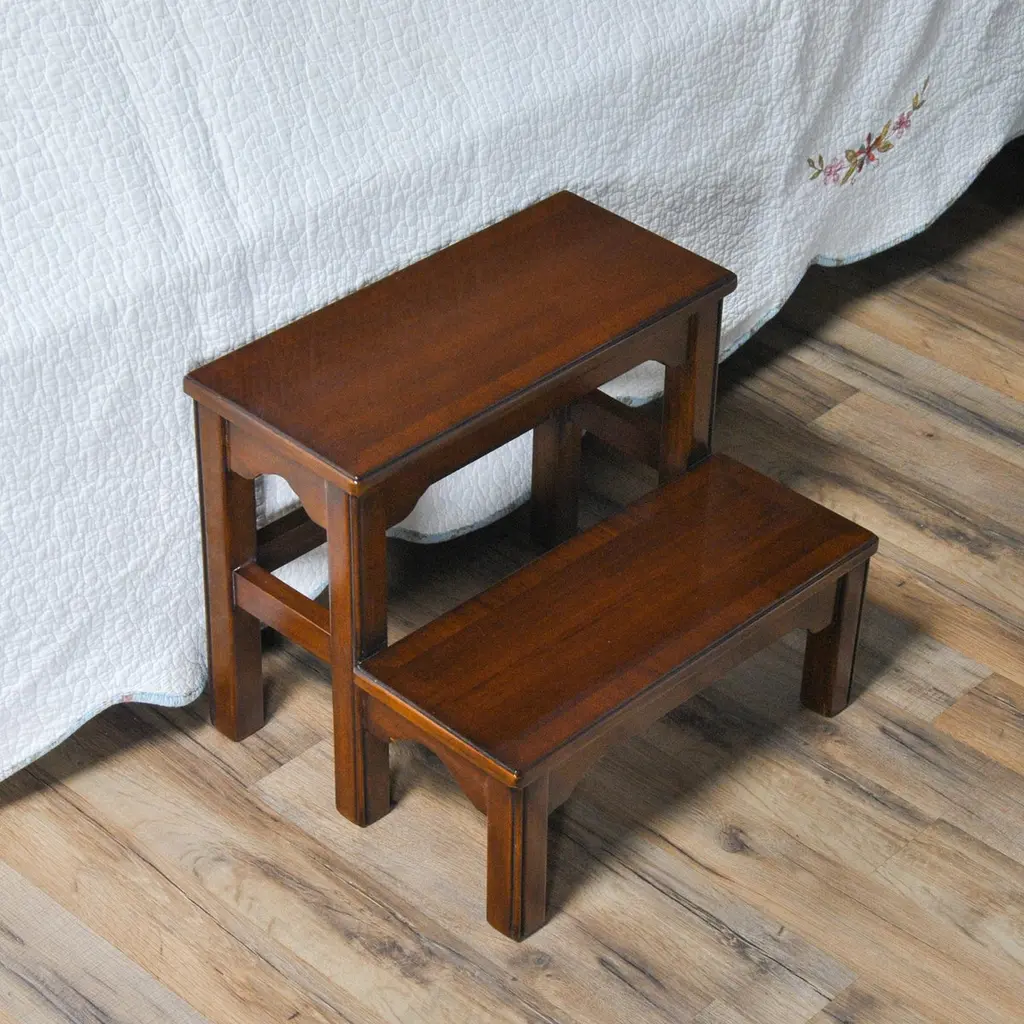 The Mahogany Bed Step has become one of our best selling items. Simple and tasteful style, practical and elegant details are all combined with great quality construction to make this high quality piece of furniture. Mahogany Bed Step is the perfect size for helping you reach that top drawer in a tall chest as well as serving as an aid for climbing into bed after a long day. The Mahogany Bed Step is a functional as well as a decorative piece of furniture. Suitable for use with any of our beds. Measures 18 W x 15 D x 15 H metric 46 x 38 x 38.