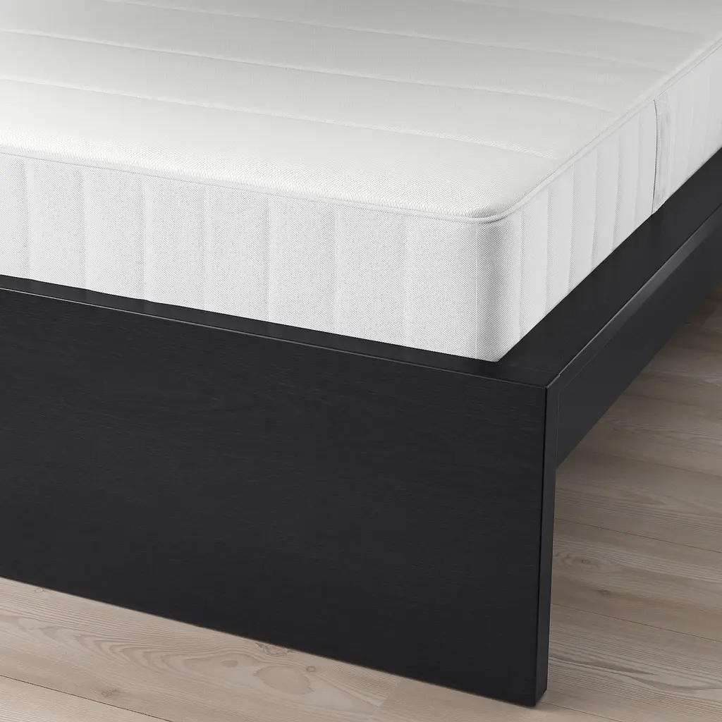 MALM Bed frame with mattress - black-brown/Vesteröy medium firm Queen. Wood veneer gives you the same look, feel and beauty as solid wood with unique variations in grain, color and texture. This versatile bed frame will look great with your choice of textiles and bedroom furniture.
