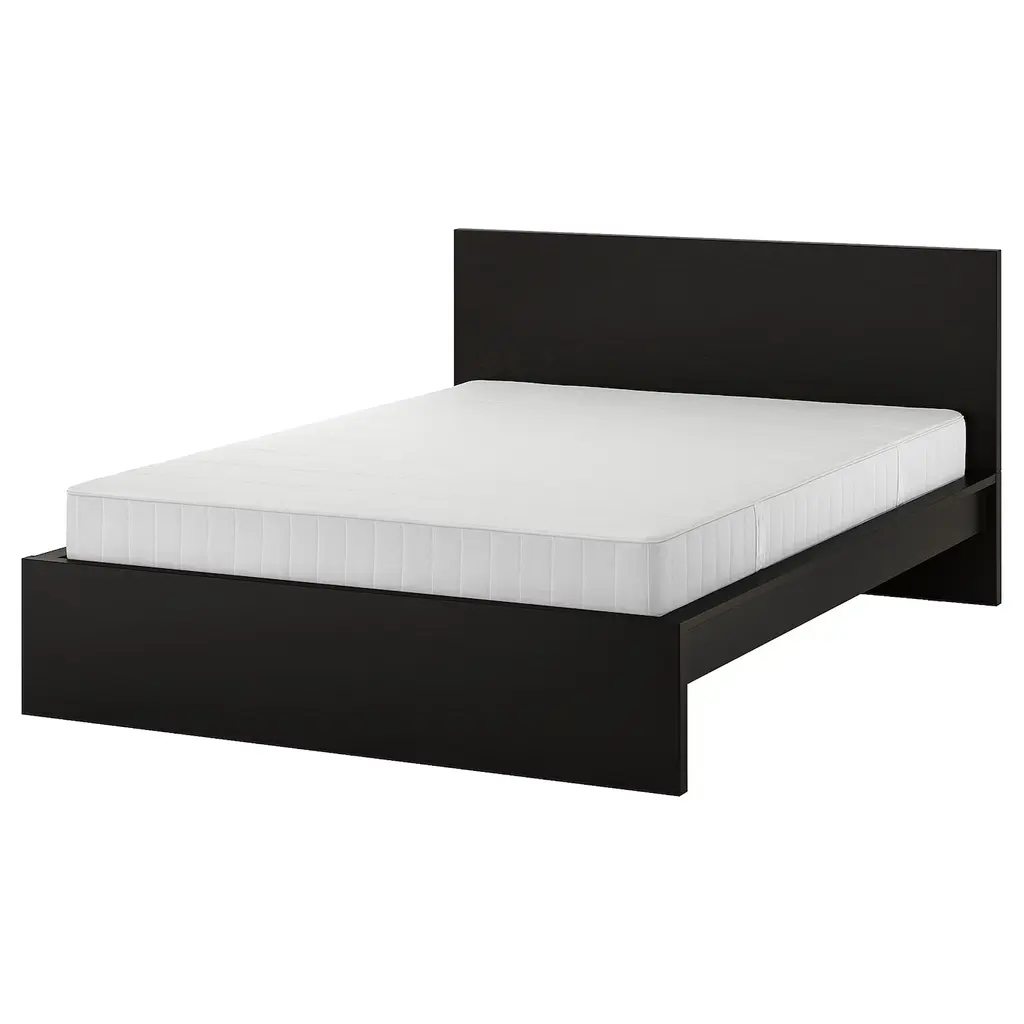 Malm Bed Frame With Mattress - Black-brown/vesteröy Medium Firm Queen