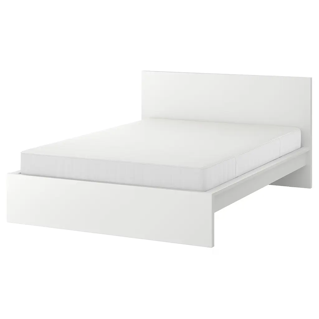 MALM Bed frame with mattress - white/Vesteröy medium firm Full. This versatile bed frame will look great with your choice of textiles and bedroom furniture. You can easily vacuum under the bed frame to keep the space clean and dust-free. 267 springs per square meter in a 90x200 cm mattress.