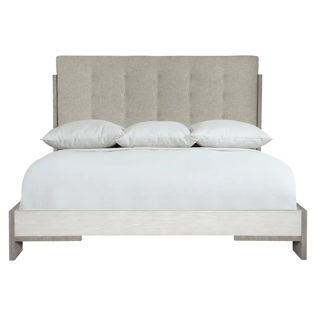 Featuring a sleek aesthetic, our Malone Collection is artisan-crafted from solid parawood or oak wood—depending on your preferred finish—and surfaced with walnut or elm wood veneers. The generously upholstered headboard features three panels in a neutral Cary Cream fabric with luxurious channel stitched detailing that will elevate your bedroom (and your sleep) to a new level of refinement.