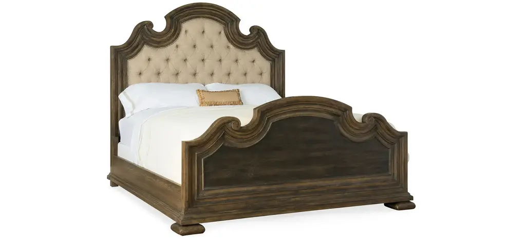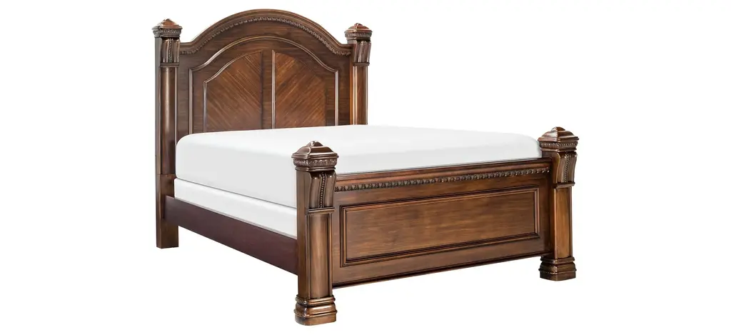 With old world style and fine carved detail, the Mariana king bed calls to the mind the stately look of yesteryear. This bed features a rich espresso finish and classic design, which includes a stunning arched headboard and finials.