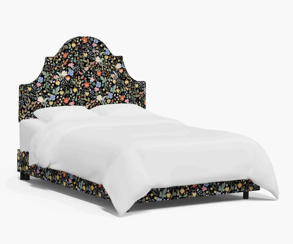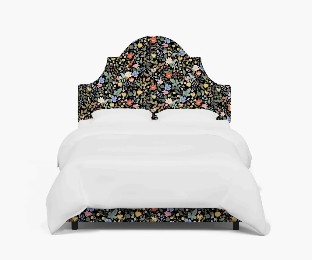 The Marion Bed has a curved shape and tailored piping that creates dimension with classic style. Select from 21 fabrics for your made-to-order piece, crafted in Chicago by Cloth & Company.