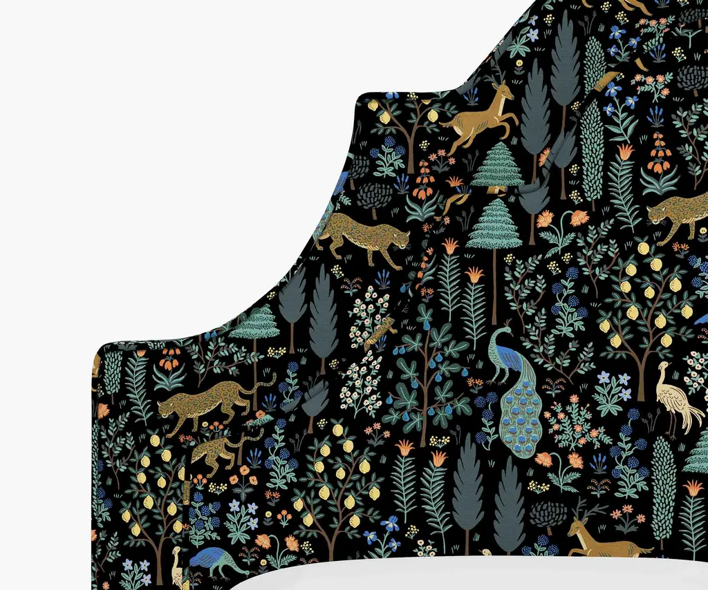 The Marion Bed has a curved shape and tailored piping that creates dimension with classic style. Select from 17 illustrated fabrics for your made-to-order piece, crafted in Chicago by Cloth & Company.