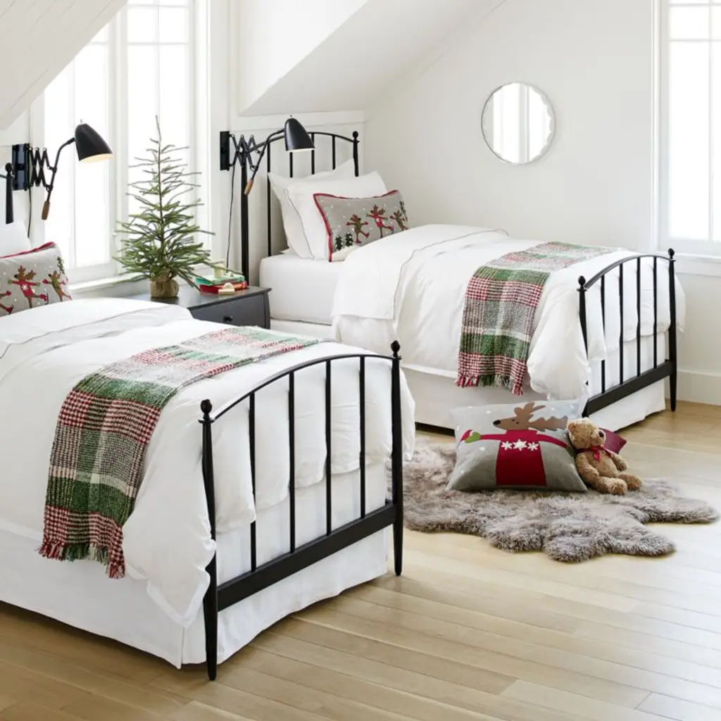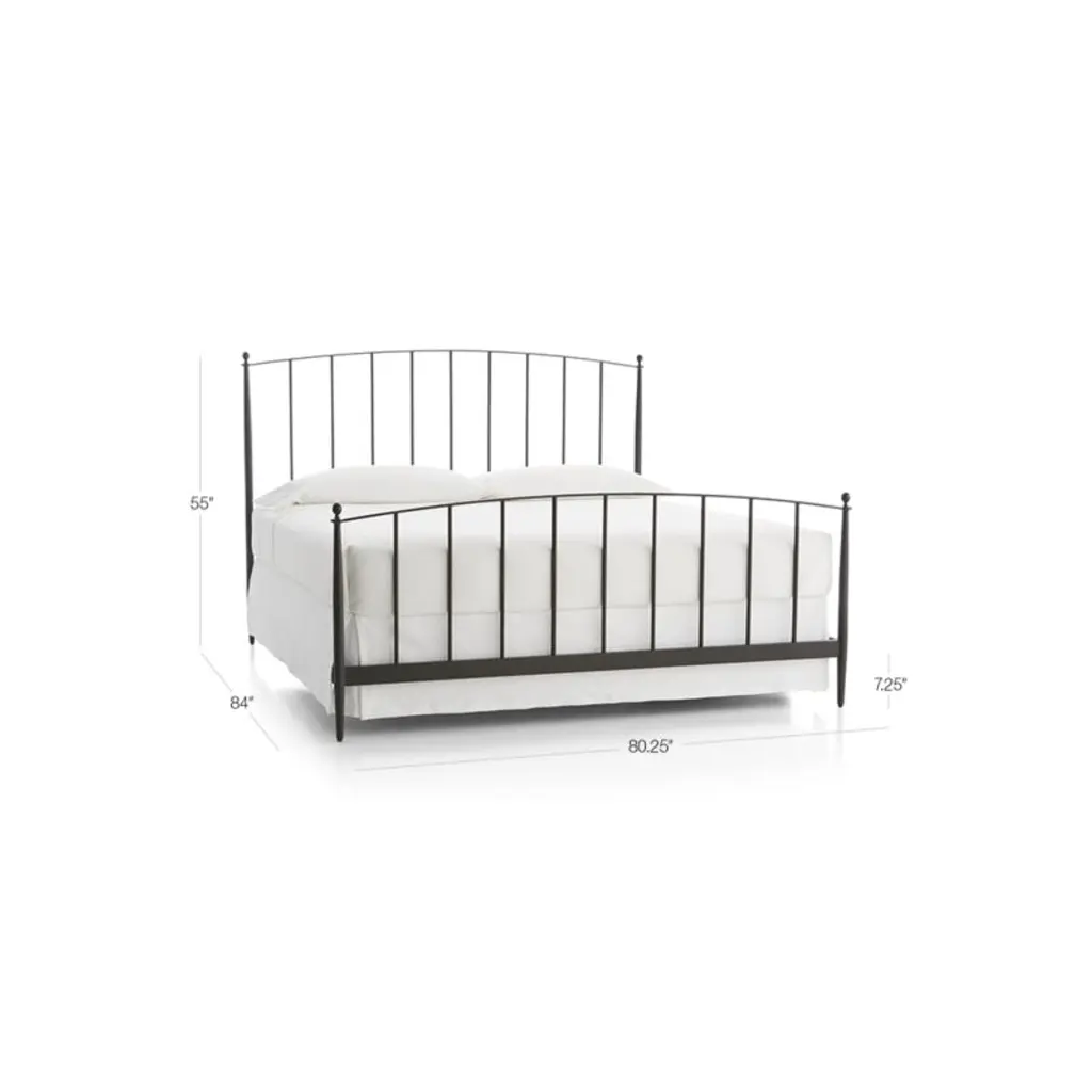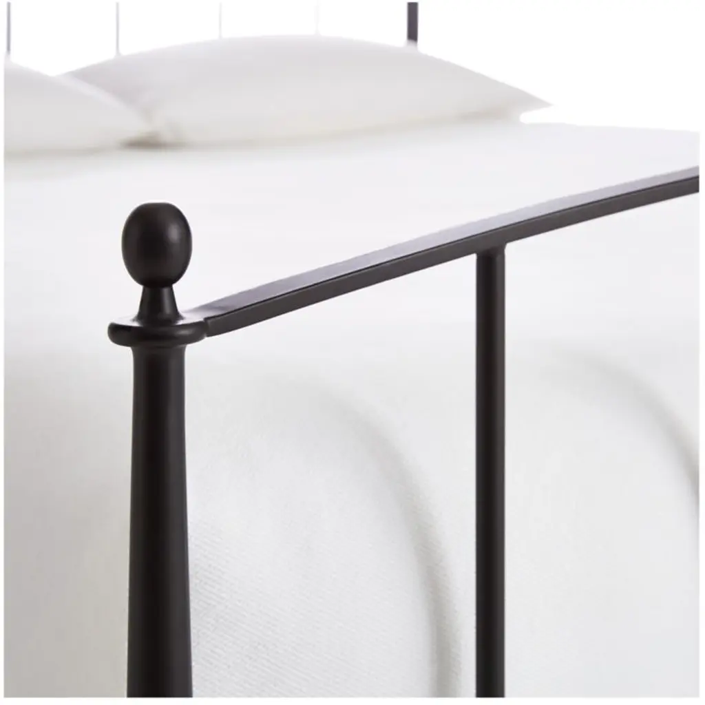 Mason modernizes the classic solid iron bed with the slightest arch to the head- and footboard. In this clean, lighter update, delicate oval finials nod to tradition and a rich charcoal powdercoat adds warmth and contemporary color.