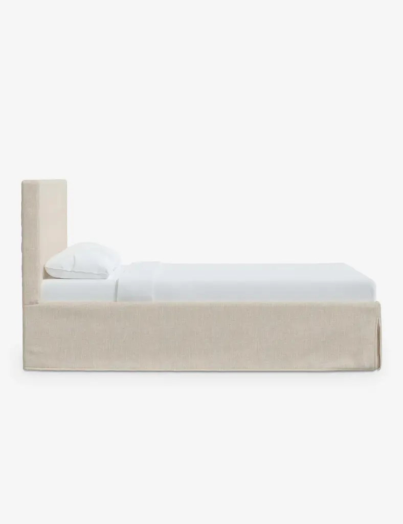 Elegant in its simplicity, this bed frame features clean lines and a tall headboard to add an outsized presence to your room. The tailored slipcover comes in a full range of saturated tones and easy-clean fabrics that can suit your preference for an always-fresh bedroom look. We love this slipcover bed for inspiring a signature touch with practical appeal.