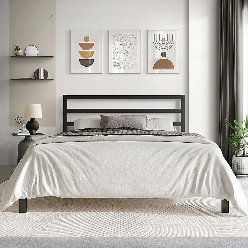 Elevate your bedroom with the Mazefruit metal platform bed, the embodiment of contemporary elegance and practicality. Its minimalist design seamlessly integrates into any living space, providing a sleek and uncluttered look. Crafted from premium-quality metal, this bed assures remarkable durability and stability, ensuring your investment stands the test of time. The powder-coated surface is rust-resistant, maintaining its pristine appearance for years to come. One standout feature is the elimination of the need for a box spring, not only streamlining the design but also offering cost savings. Keeping your space tidy is effortless, thanks to the easy-to-clean underside. Discover the perfect harmony of style, longevity, and convenience with this simple classic metal platform bed. Redefine your bedroom space today Customer assembly is required.