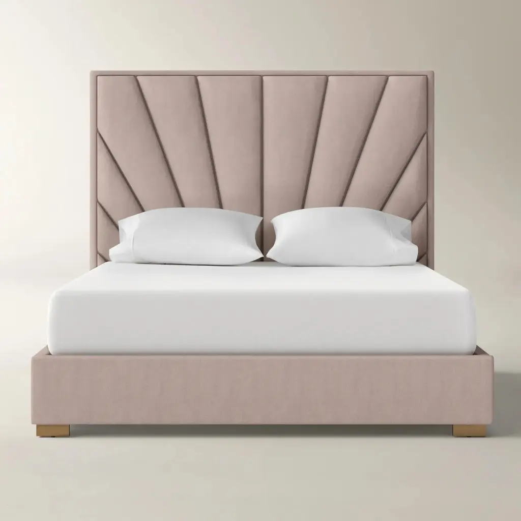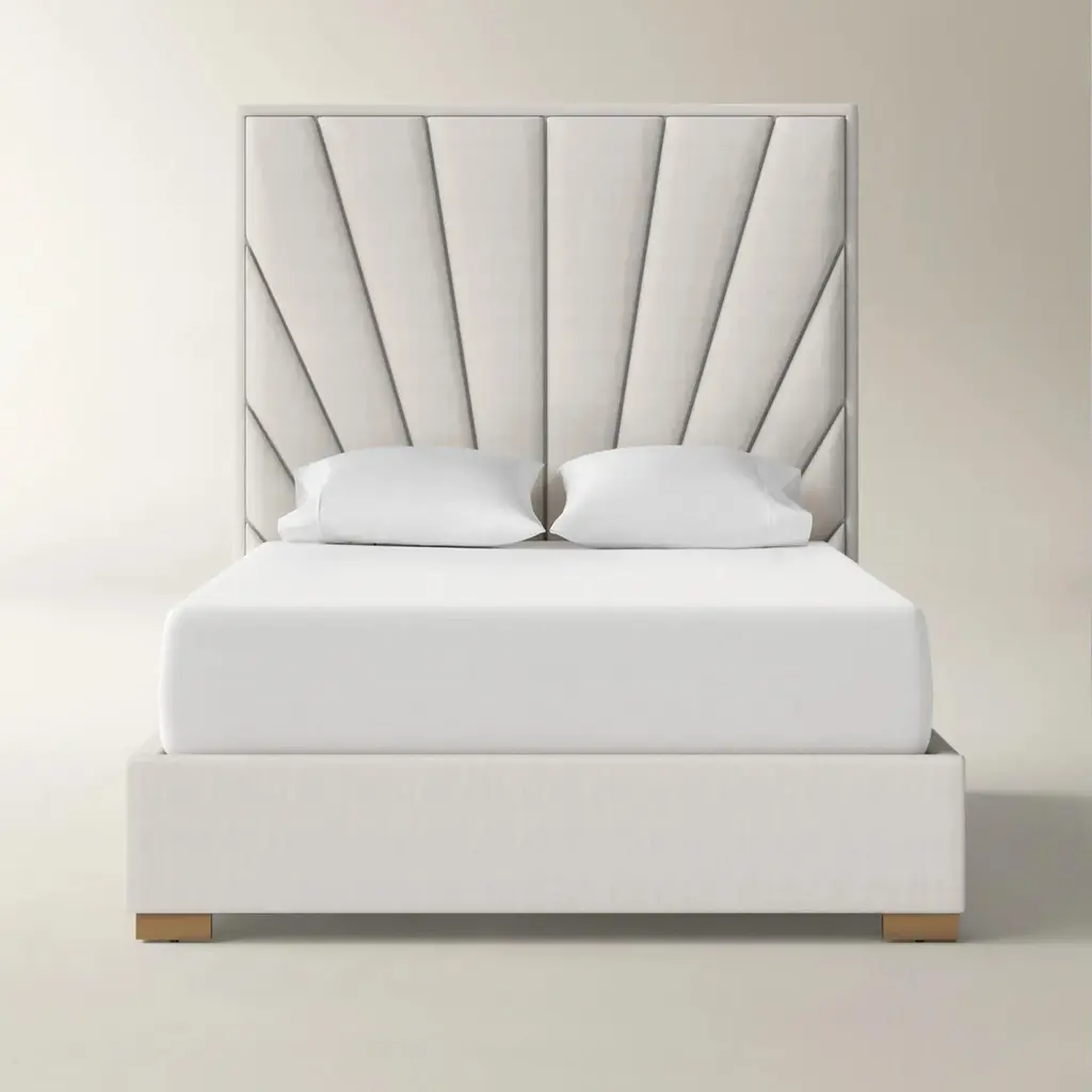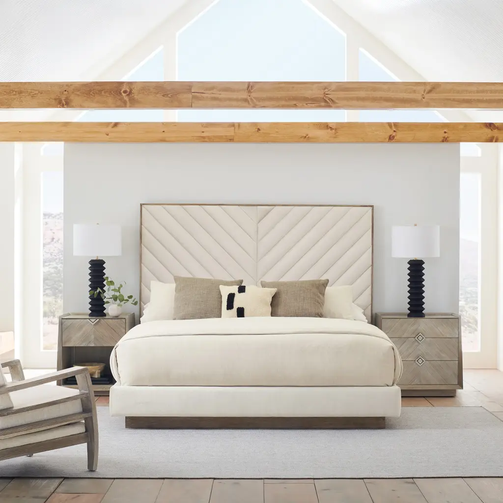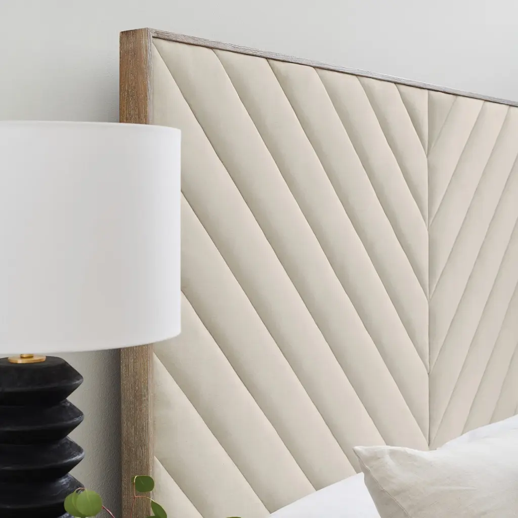 Equal parts chic and cozy, the Meet U In The Middle Bed from Caracole is a luxurious addition to any sleep space. Its statement-making design features a tall, channel tufted headboard with a striking chevron pattern. The fully finished sides appear to float above an exquisite wood base, adding a touch of modern organic elegance to your space. Highlights