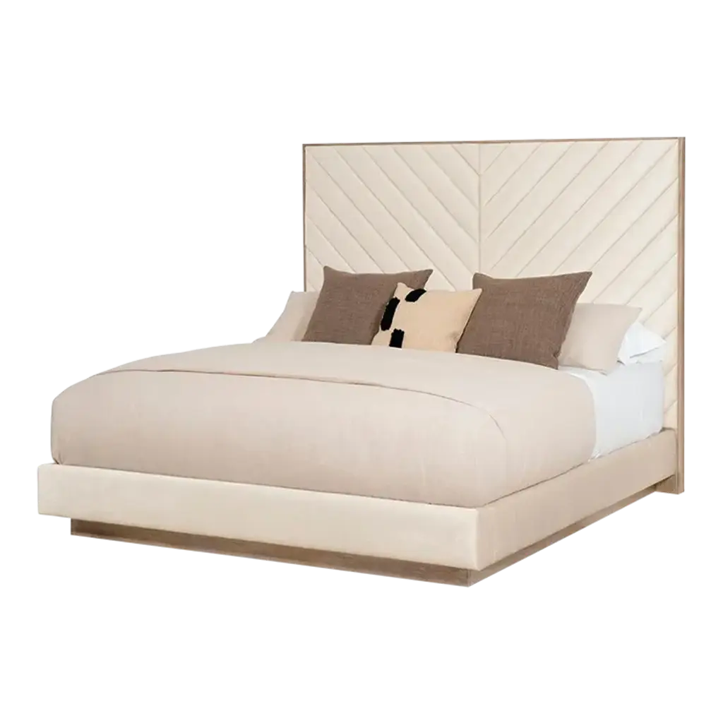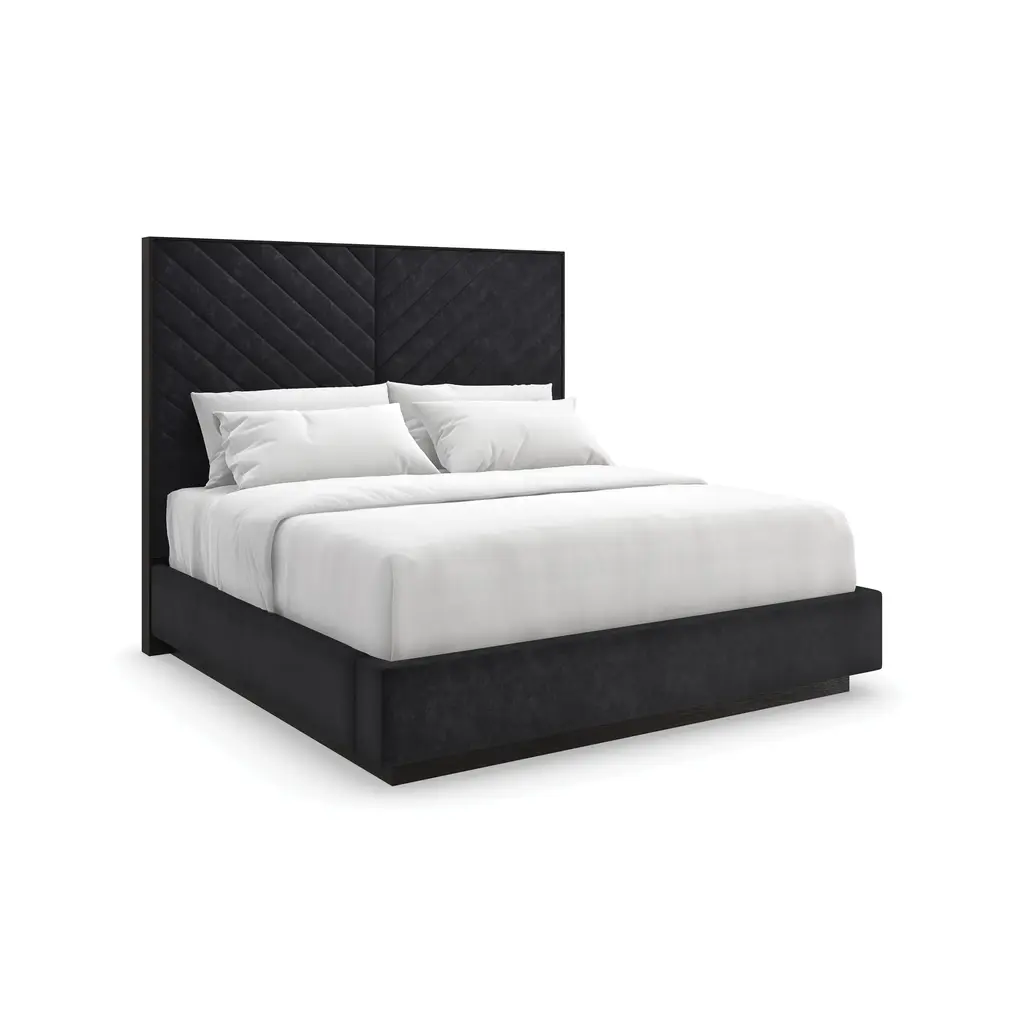 Equal parts chic and cozy, the Meet U In The Middle Bed from Caracole is a luxurious addition to any sleep space. Its statement-making design features a tall, channel tufted headboard with a striking chevron pattern. The fully finished sides appear to float above an exquisite wood base, adding a touch of modern organic elegance to your space. Highlights