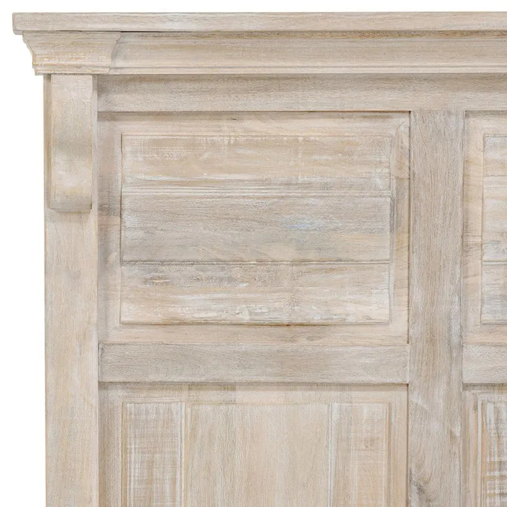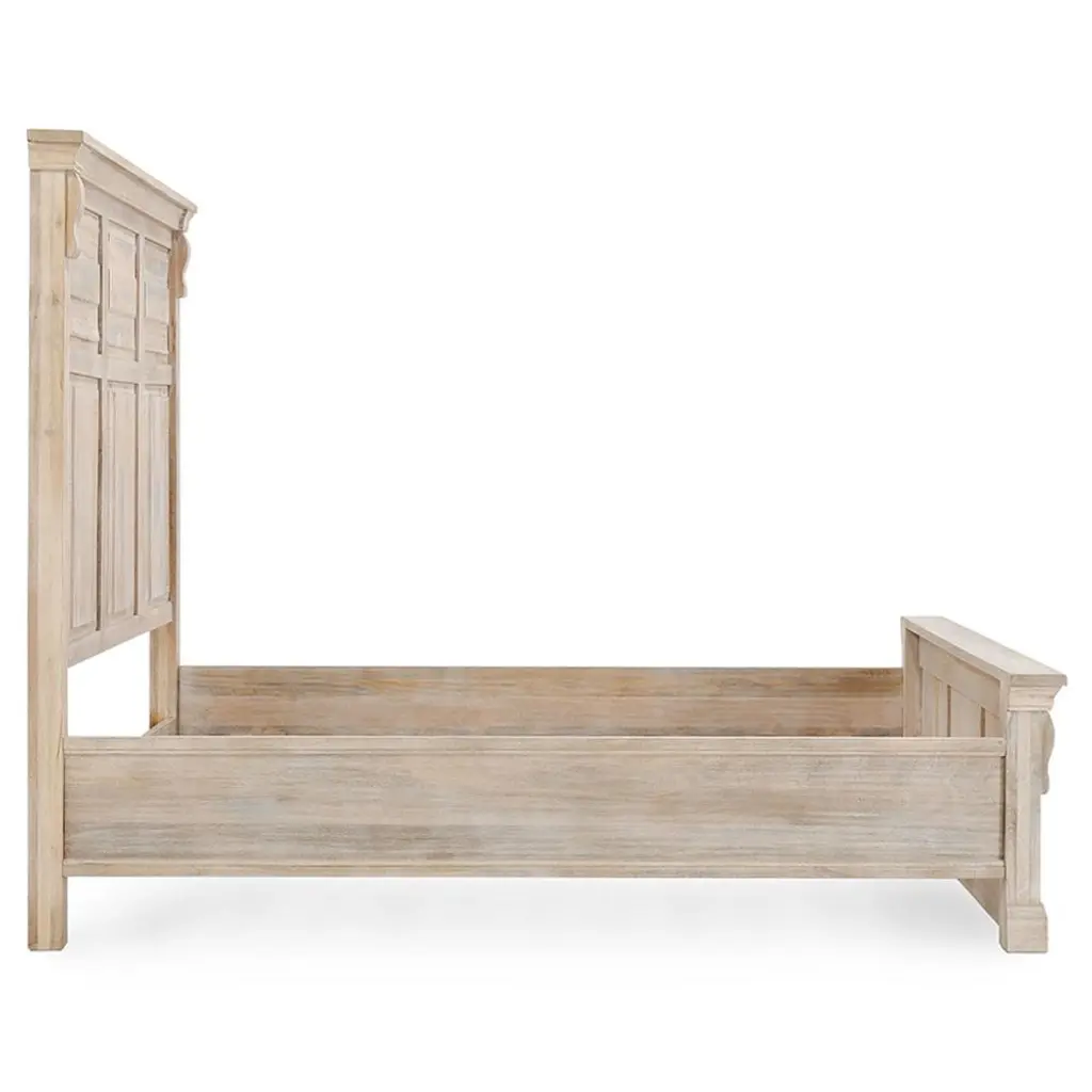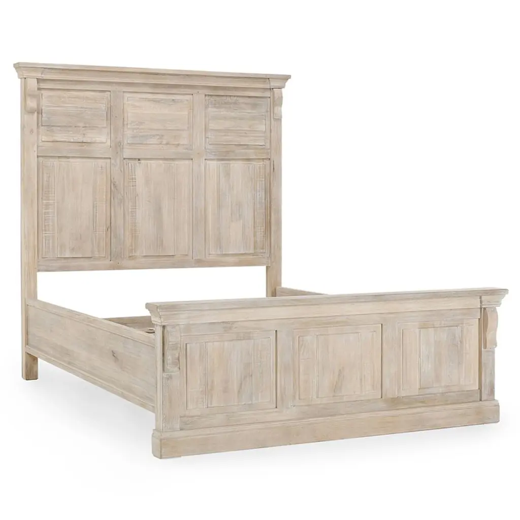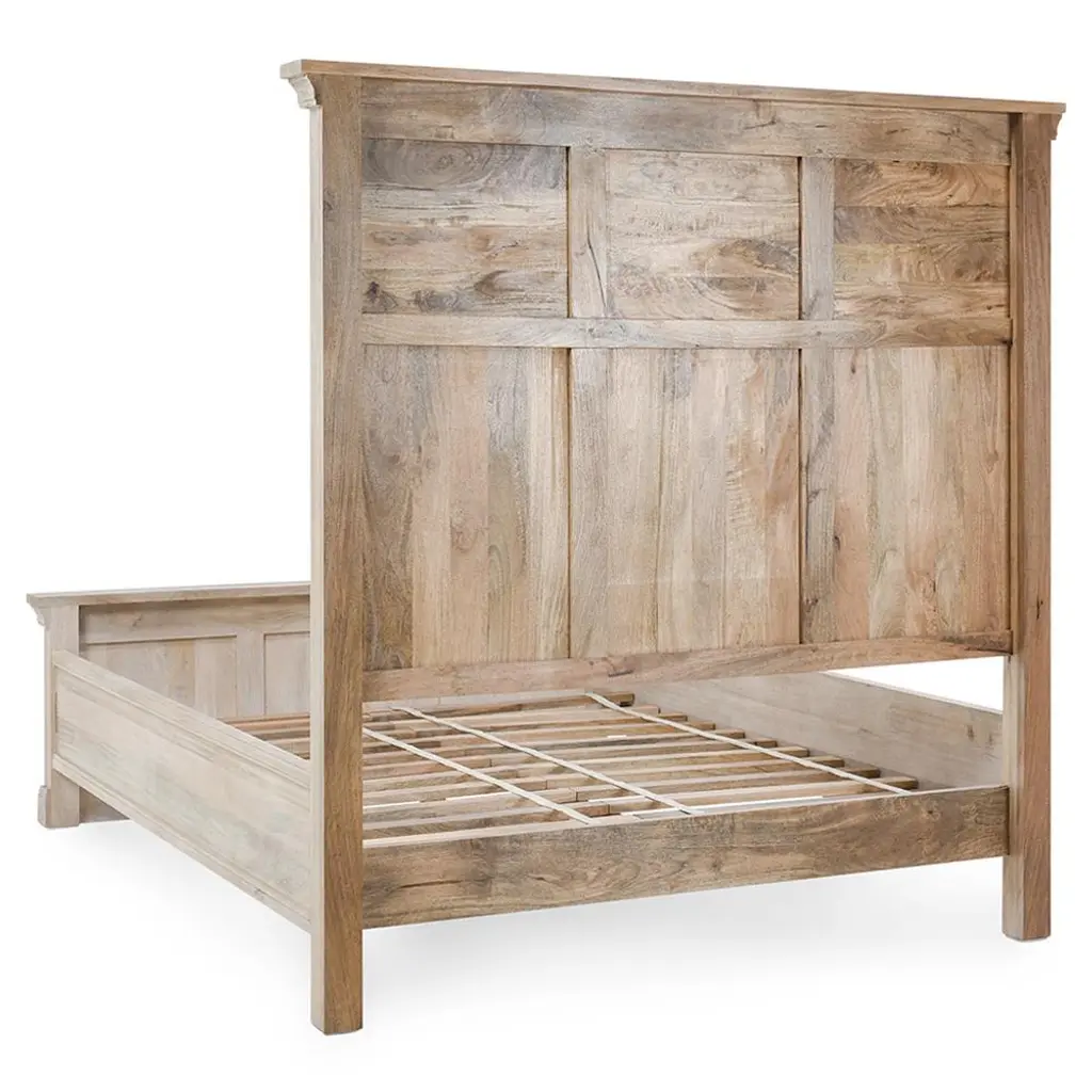 Melany French Country Natural White Wash Mango Wooden Bed - Queen