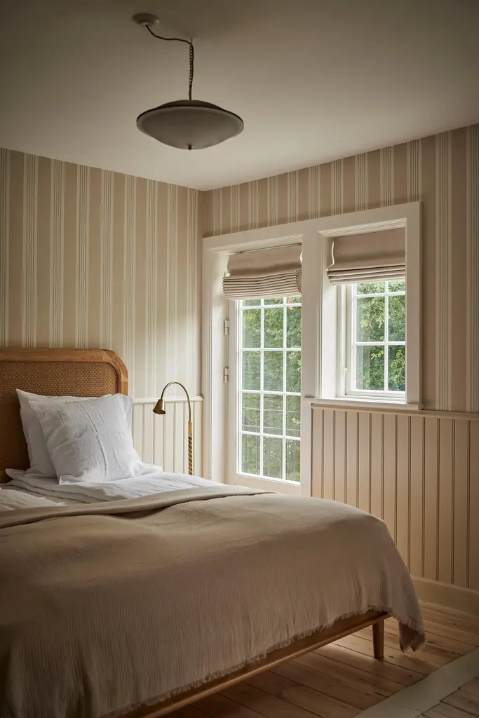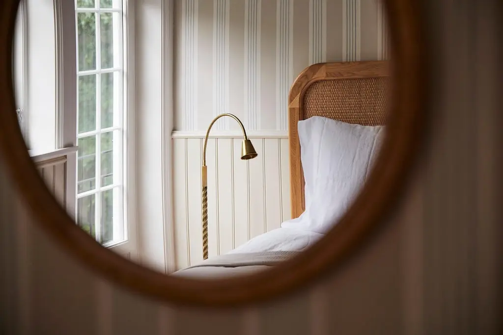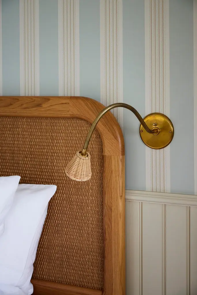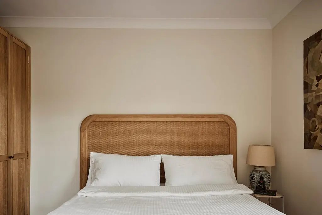 A simplified version of the Sanders bed, with a lower headboard, in European oak and rattan. Hand crafted to order in Europe.Available in nine sizes and two timber tones, Natural Oak or Cognac. Hand crafted to order in Europe. Can be produced to bespoke sizes for a surcharge. Please note that each product is handmade and unique, so the colour may differ slightly from the one pictured.Dimensions:US King Headboard — 2066W x 62D x 1360HBase — 2152L x 2018W x 380HMattress — 2030L x 1930WOther sizes also available: Euro Double Headboard — 1546W x 62D x 1360HBase — 2122L x 1488W x 380HMattress — 2000L x 1400WEuro KingHeadboard — 1746W x 62D x 1360HBase — 2122L x 1688W x 380HMattress — 2000L x 1600WEuro Super KingHeadboard — 1946W x 62D x 1360HBase — 2122L x 1888W x 380HMattress — 2000L x 1800WEuro Mega King Headboard — 2146W x 62D x 1360HBase — 2122L x 2088W x 380HMattress — 2000L x 2000WUS Queen Headboard — 1656W x 62D x 1360HBase — 2152L x 1608W x 380HMattress — 2030L x 1520WUS Californian King Headboard — 1966W x 62D x 1360HBase — 2152L x 1918W x 380HMattress — 2134L x 1829W.——— Can be produced to bespoke sizes for a surcharge. Please note - lead time is maximum. We often hold a small amount of stock which is available much quicker, please enquire. Please note - the headboard is designed to be attached to the wall via split batten for stability.