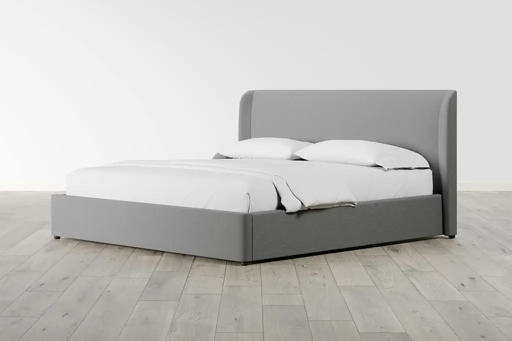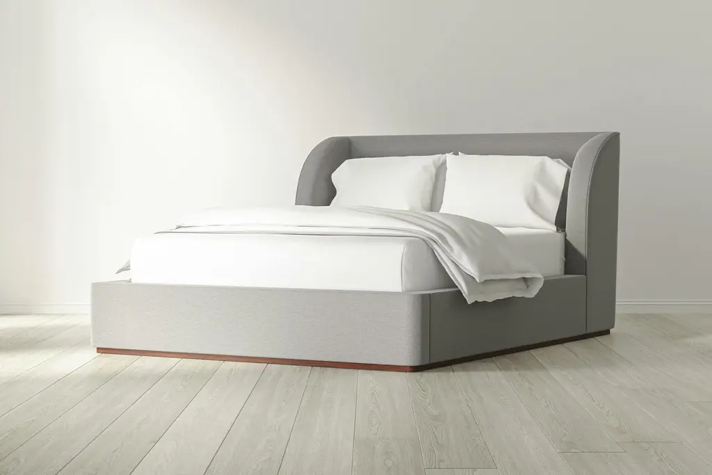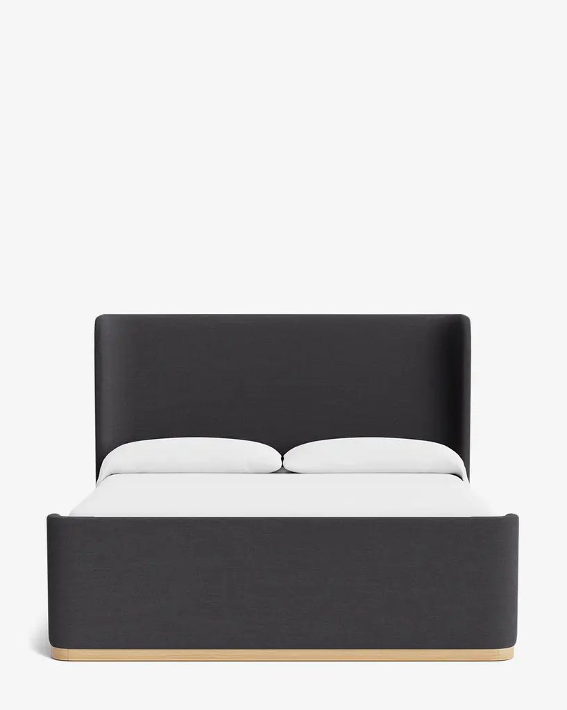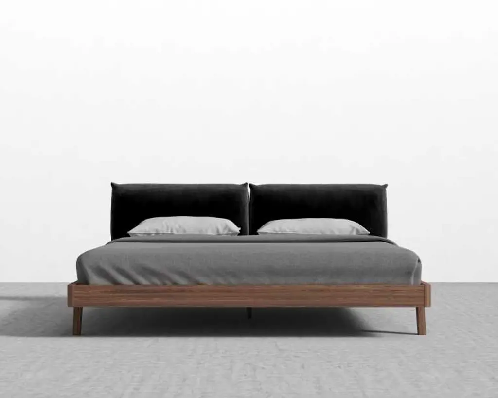 Mikkel is a simple and solid Danish design piece made from beautifully polished walnut wood veneer and an upholstered headboard. The minimalist frame is carefully handcrafted with no added width or grandeur than what is needed for your queen or king sized mattress. Finished with a uniquely constructed base that is carved with a meticulous 45 degree angle from solid ash wood, Mikkel is a reliable bed for your most restless nights.