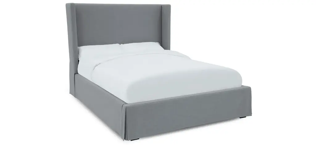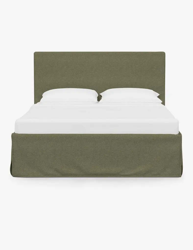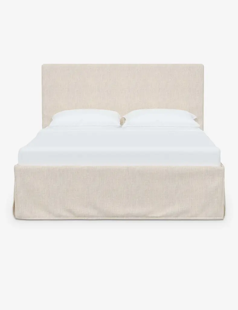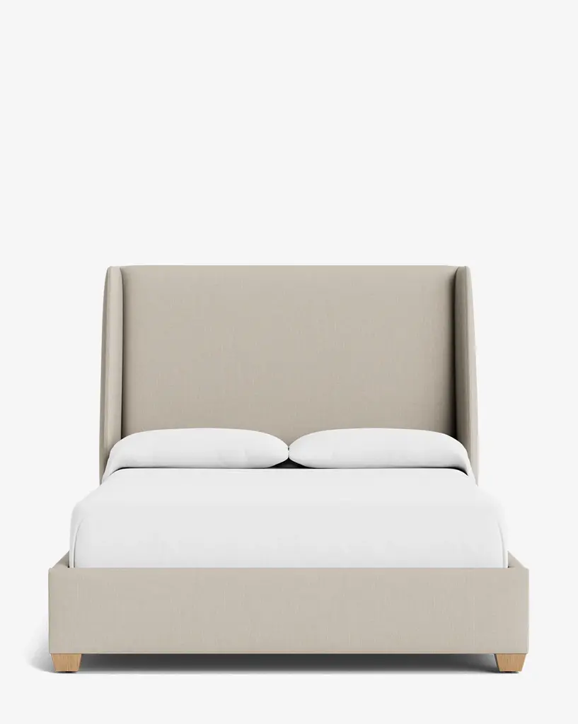 In a bench-made frame upholstered in your selection of high-end fabrics, the Mina Bed is an updated take on classic design. With two streamlined channels that frame pillow vignettes and charming but subtle wood bun feet, the bed frame has a modern yet traditional feel.