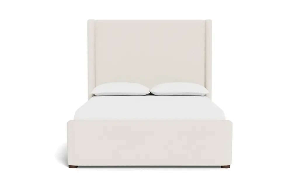 In a bench-made frame upholstered in your selection of high-end fabrics, the Mina Bed is an updated take on classic design. With two streamlined channels that frame pillow vignettes and charming but subtle wood bun feet, the bed frame has a modern yet traditional feel.