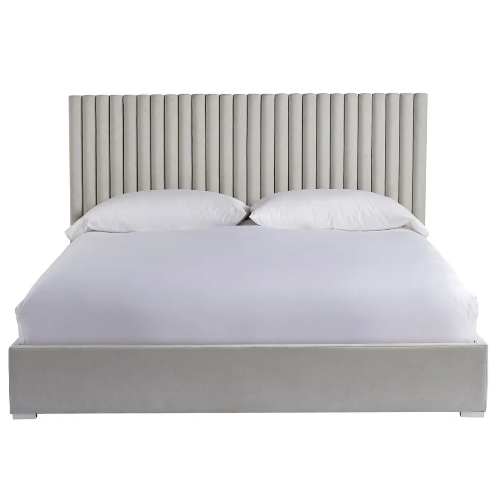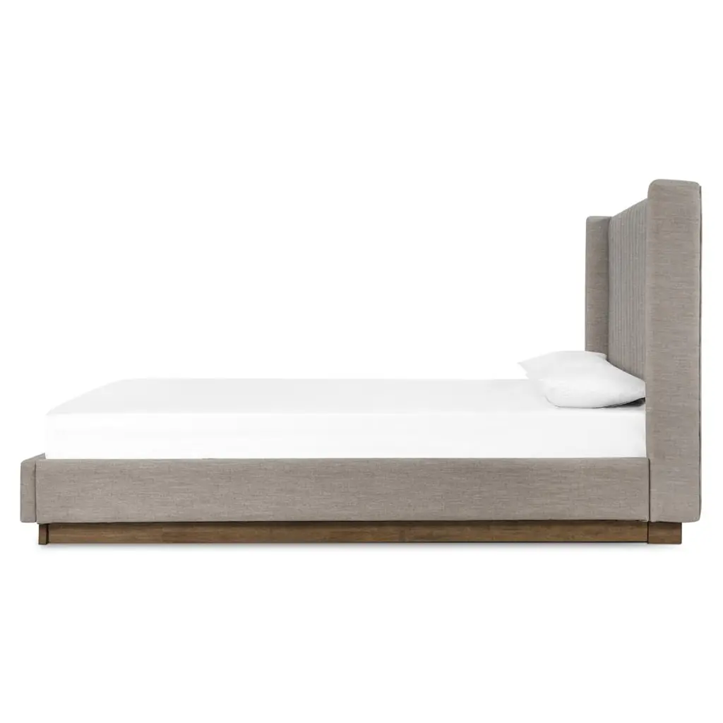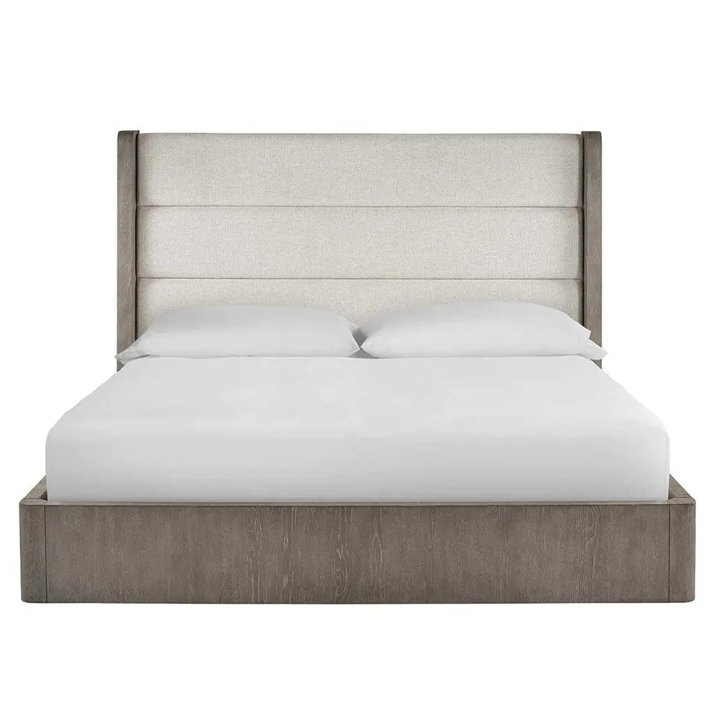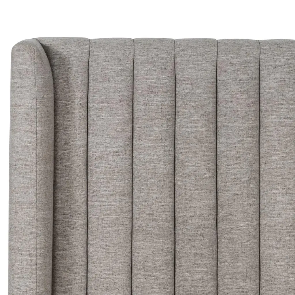 Mirica Rustic Grey Performance Channel Brown Wood Tufted Wingback Bed - King