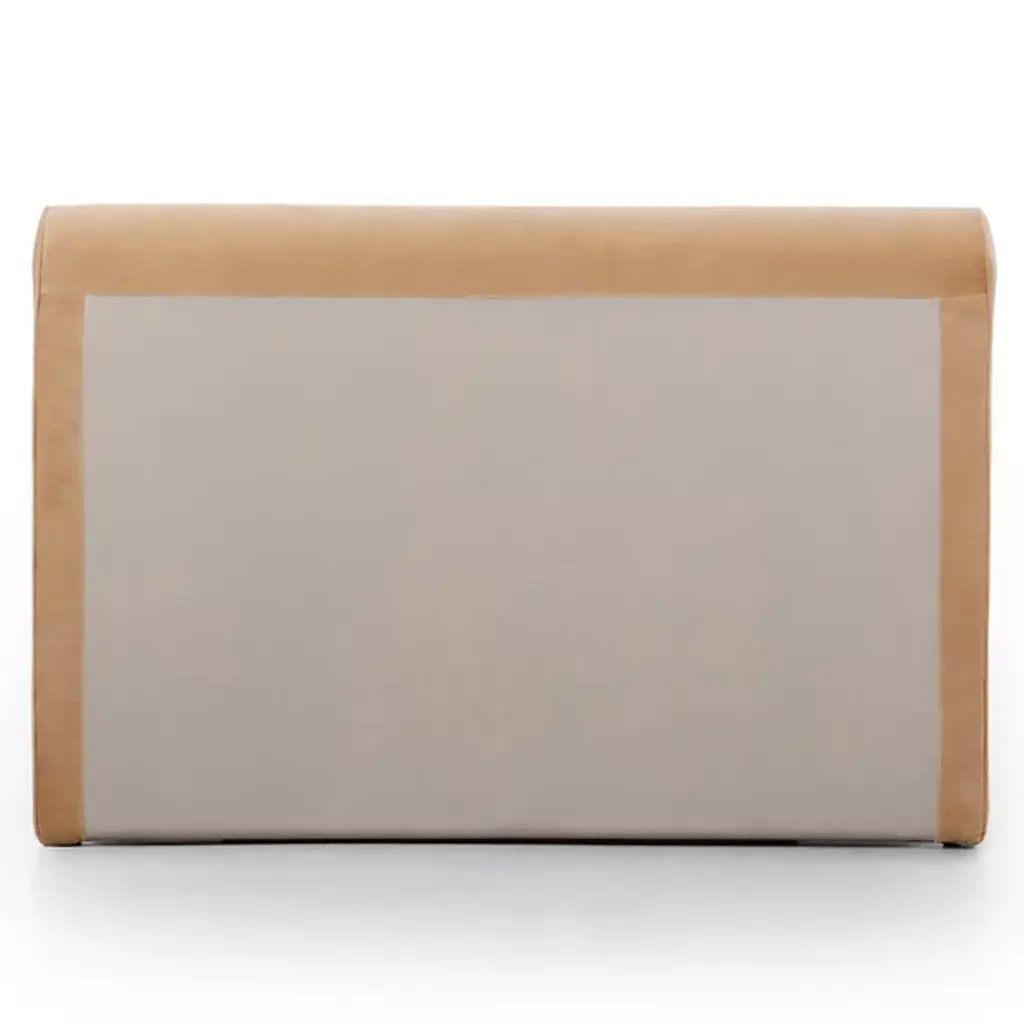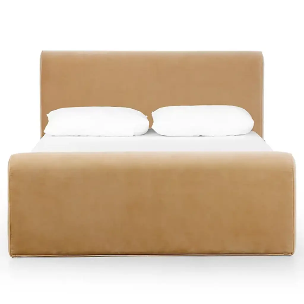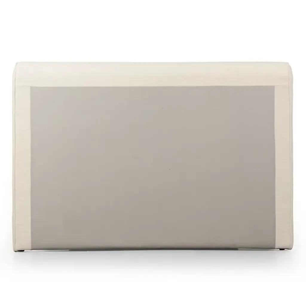 Folds of soft cotton attract the eyes and set a relaxing tone in the Mitchell Bed from Four Hands. The piece puts a sculptural spin on the traditional bed. Its headboard features rounded edges along with the foot for comfort in any resting position. The foot impresses with a curling contour from a side profile view. A series of slats arranged inside offers generous support for one’s mattresses with durability in mind. The performance, polyester-based fabric heightens the enduring quality of the piece.