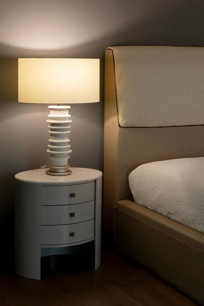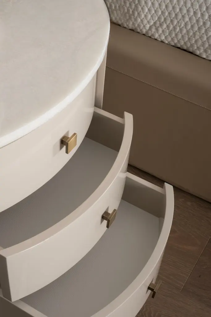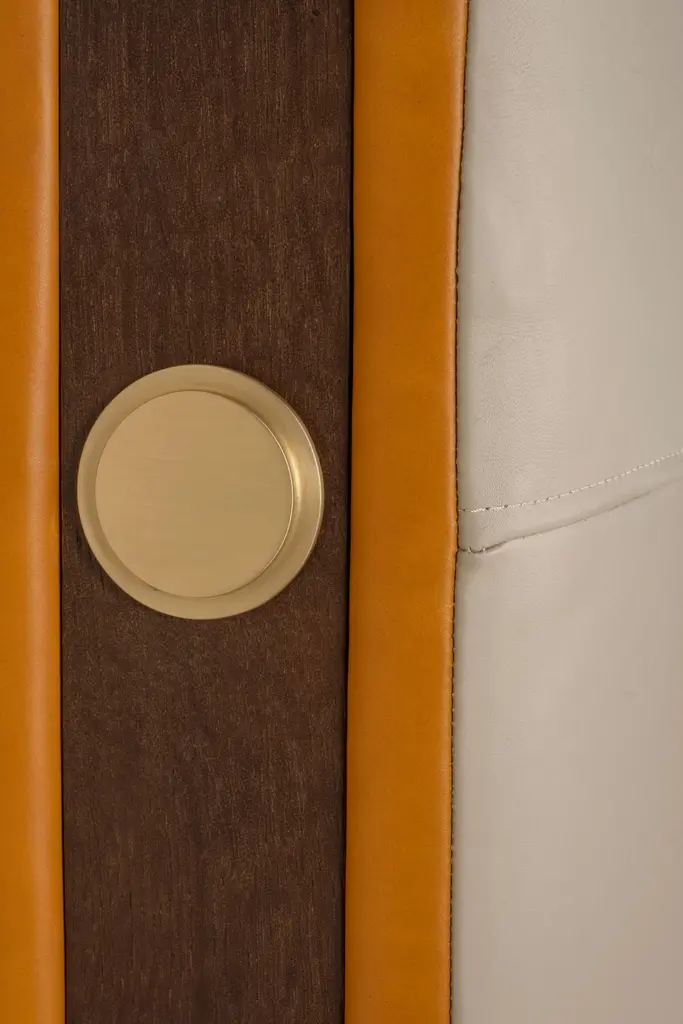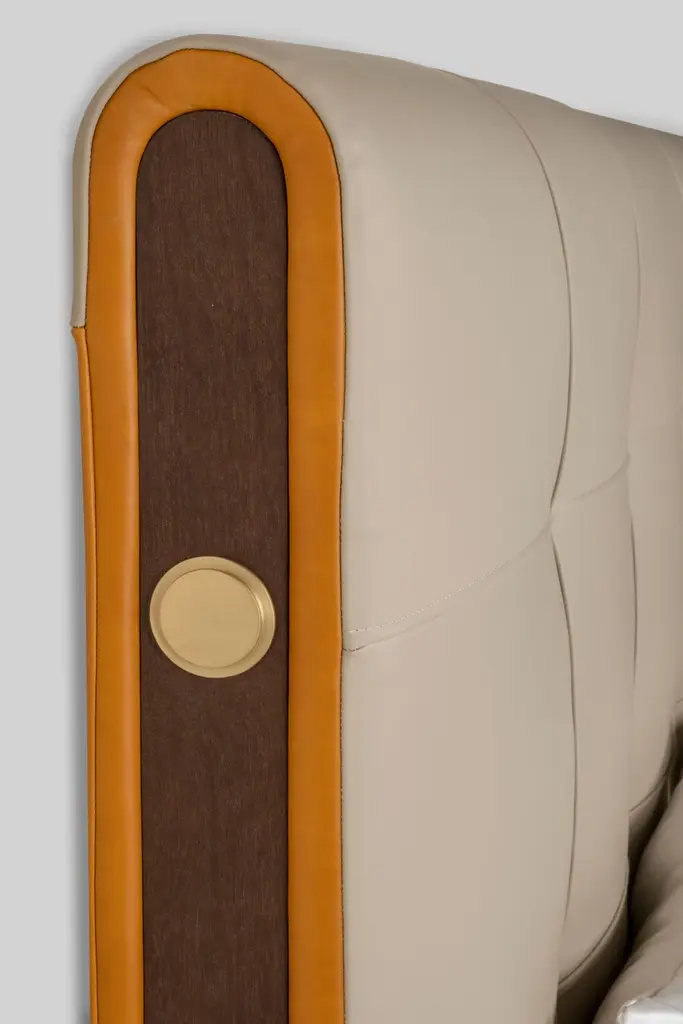 Midnight Bed, Modern Collection, Handcrafted in Portugal - Europe by GF Modern.Midnight is an elegant bed upholstered in beige, high quality Italian leather. It was designed to combine modern comfort with elegant details. The beige leather headboard frame with brushed brass details gives this bed a luxurious yet simple look. The leather or fabric cover is divided into squares, the distinctive feature of the series.European versions for mattress sizes:160x200cm180x200cm200x200cmUSA versions for mattress sizes:Queen 60x80”King 76x80”California King 72x84”Midnight Bed Material CodesWD123 American Oak; open-pore tobacco colour stained; matt finishME030 Brushed brass; matt finishM103413 Beige high standard Italian leatherHandcrafted in Portugal - Europe by GreenappleUnique by design, Crafted by peopleFounded in 2005 by Sérgio Rebola and Rute Martins, Greenapple designs and produces in-house luxury furniture for exclusive customers worldwide.Our own in-house production facility allows us to be obsessed with detail, and gives us the freedom to dedicate ourselves to the most demanding tailor-made and customised work. As Rute designs all the unique pieces, Sérgio assures the high-quality standards through the whole process - from design to production; from production to your home. Fine craftsmanship, whether perfected by experienced hands or state-of-the-art machinery is quintessential in delivering top quality experiences.