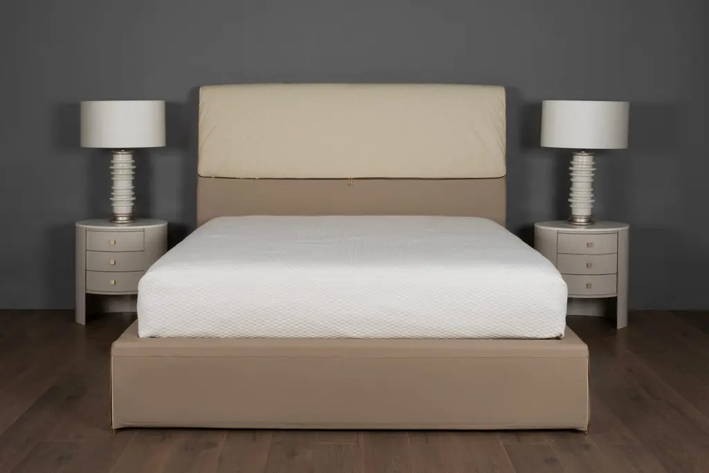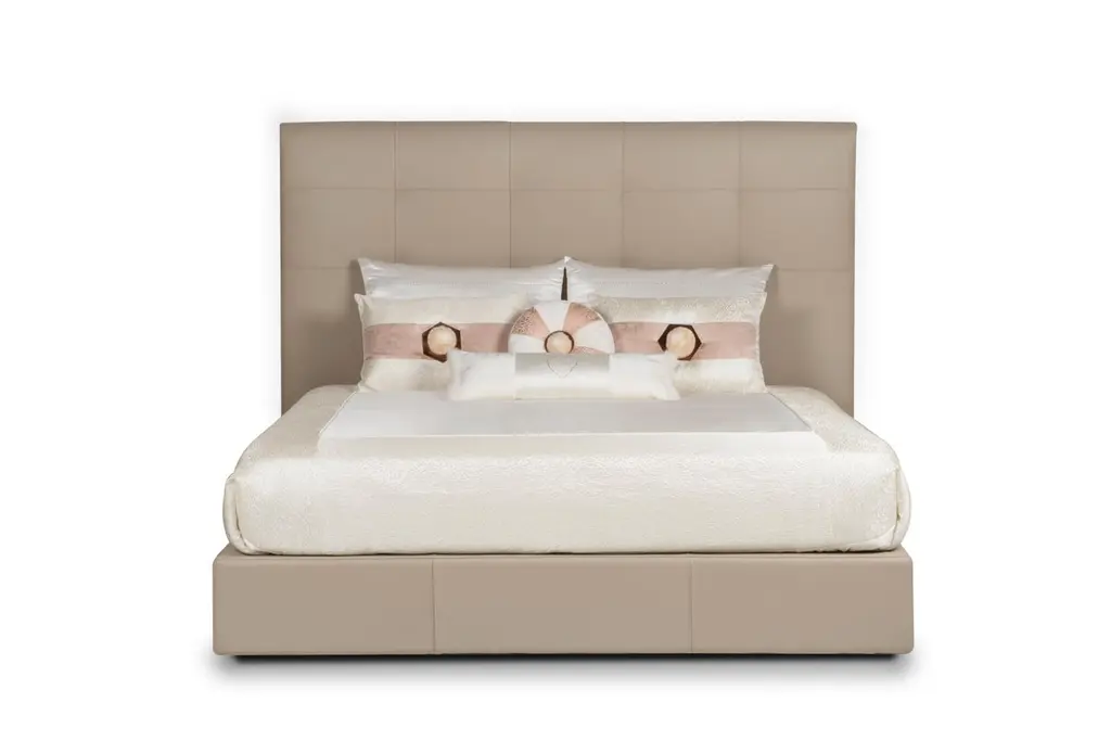 Modern Midnight Bed, Beige Italian Leather, Handmade In Portugal By Greenapple