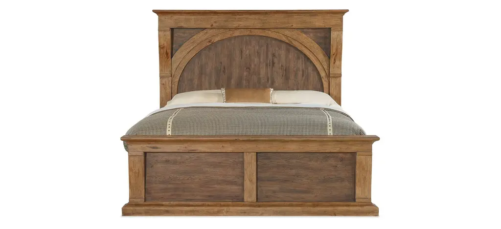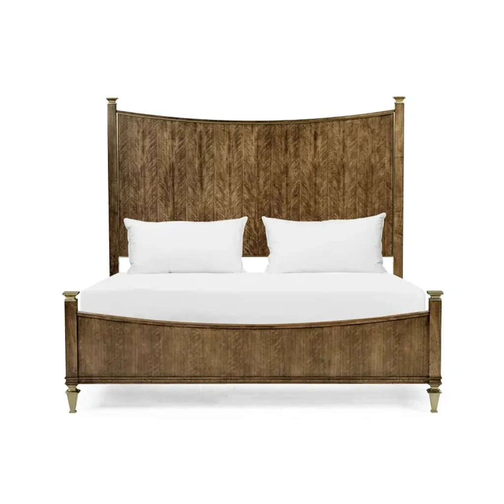 A Modern rustic oak Queen bed in our Dusk finish. The Alhambra Arch herringbone designed headboard and mirrored herringbone parquetry highlight the beautiful craftsmanship and design of this bed.Shown in Dusk FinishFor US Queen mattress - 60" x 80"Solid Wood/Veneer Dimensions65.25" W x 84.5" D x 70" H.