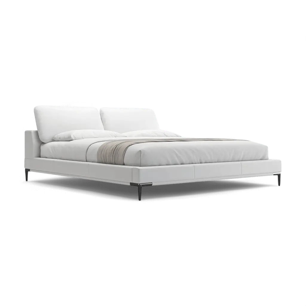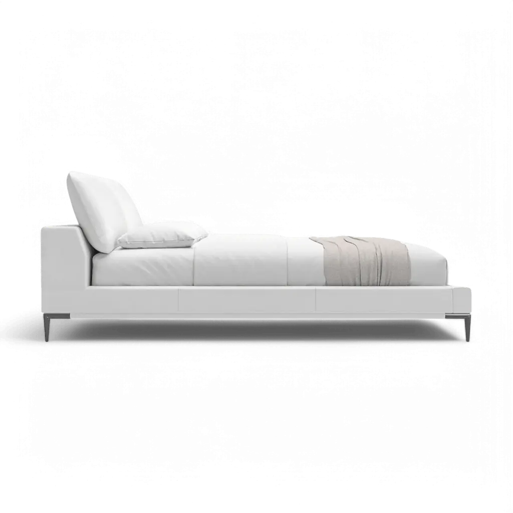 Upgrade to a style that is elegant and refined with the Movido Bed in White. Offering straight clean lines, white leatherette upholstery, and polished chrome legs, this piece exudes class while providing comfort. The dual adjustable headboard allows for custom support and adds a striking design element. The frame is comprised of wooden slats for stability. Also available in Gray.Frame: Plywood + Solid Wood | Headboard: Adjustable + Eco-Leather + Polyester + Foam | Legs: Polished Chrome