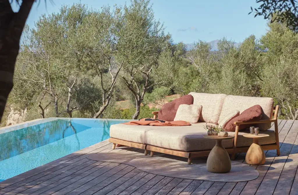 Surrounded by a sense of purity in the use of natural materials, MUYU offers a lounge collection as well as light and airy dining chairs. Soft, rounded joints ensure the elegant teak silhouettes blend together seamlessly into a single organic structure. Complemented by large, fluffy cushions, MUYU extends an open invitation for convivial outdoor moments – from sunrise to sunset.