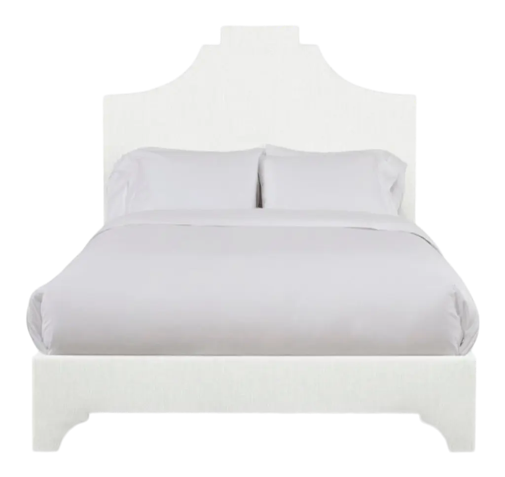 This listing includes the entire bedframe, including the headboard, rails, and footboard. From Chairish's line of bespoke upholstery essentials, this iconic bedframe is proudly made in America by an exceptional team of highly skilled artisans. Available in a colorful variety of quality linens and velvets, this timeless yet updated piece is a worthy focal point for any well-designed bedroom. Padded and tightly upholstered with muslin back and gimp trim. Headboards have 1" thick foam and padded (overlaid) with batting. Bed includes a metal support system for boxspring. Ships in two boxes and comes in 4 pieces; some assembly required. Spot clean. This item is made to order. Please allow up to 8 weeks for delivery.