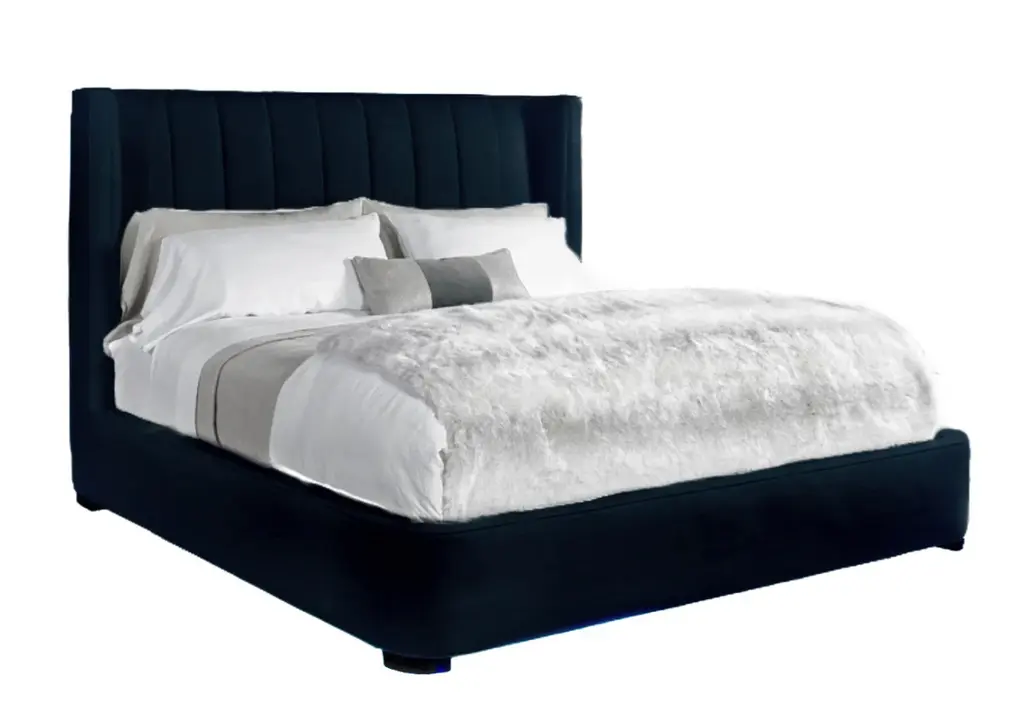 New York Box Bed King Size In Vegas Velvet Dark Blue Upholstery By Sergio Bicego
