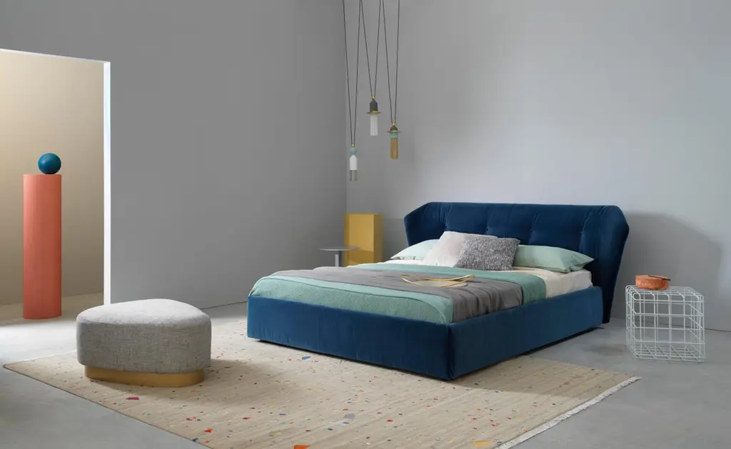 The variation with a floor bed frame offers a fuller option and expresses the classic identity of the New York line, maintaining the iconic quilted headrest. Only bed without bed base.Born in 1953 he left formal education and began, almost by chance, his experience in the field of the padded furniture. Fascinated by the world that surrounded him, he eagerly devoted himself to researching building forms and techniques which have borne fruit for the companies in which he worked. In 1991 he opened his studio as an independent designer and in 1993 he came across Saba Italia. New challenges and new incentives lead to the creation of the “nomad sofa”: Taos, Ananta, Limes, Nesting, Pixel. Creations that were born from reflection of new desires that encourage us to live in a less formal way, equipped with systems that enable change with simple gestures, by playing with shapes.Box version structure: Headboard in wood covered with polyurethane foam and clothed with white cotton fabric coupled to polyester fiber 380gr/sqm. Box version has got bed frame in multilayer wood padded with polyurethane foam and clothed with white cotton fabric coupled to polyester fiber 380gr/sqm.Feet: In wood black painted h 4 cm for Box version.Additional information:Material: Wood, polyurethane foam, polyester fiberUpholstery: Special, A12 - col.78Frame finish: Black paintedDimensions: 243 W x 228 D x 93 HSeat height: 32 cmAvailable in other upholstery options: C, E, Vip, extra, lusso, top, elite, royal, pelle club, pelle florida, pelle masterAvailable in other size options: Queen size, small, large