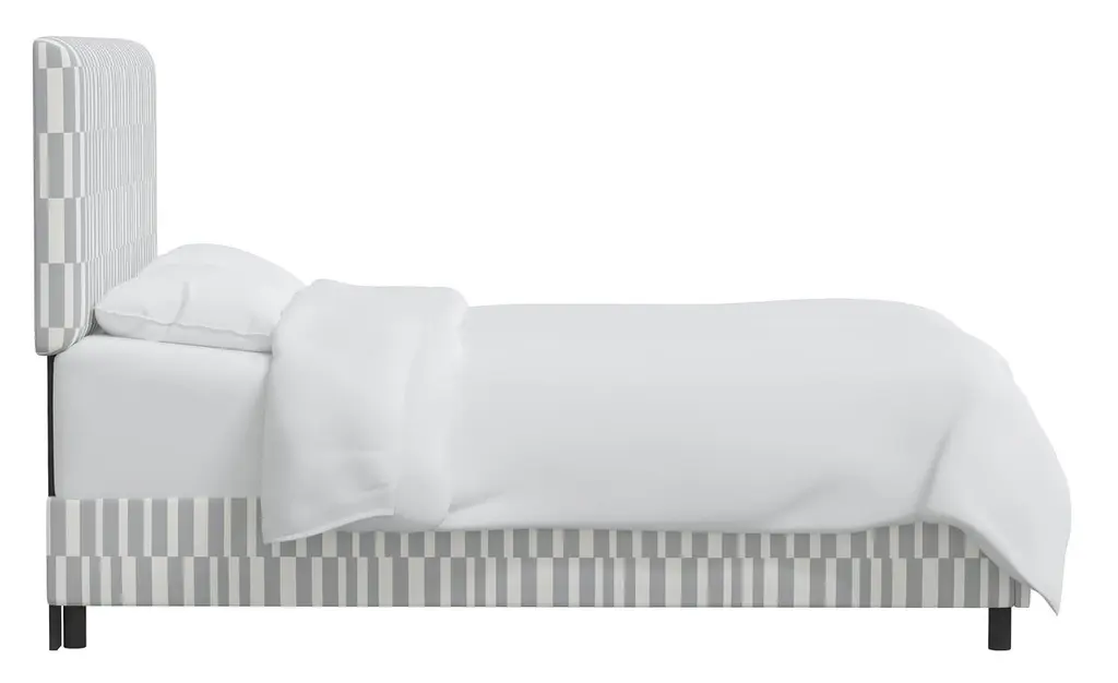 Exclusive to One Kings Lane: Mod stripes give this streamlined bed a dash of retro chic. The headboard's generous padding makes it ideal for anyone who likes sitting up to read or watch TV in bed.