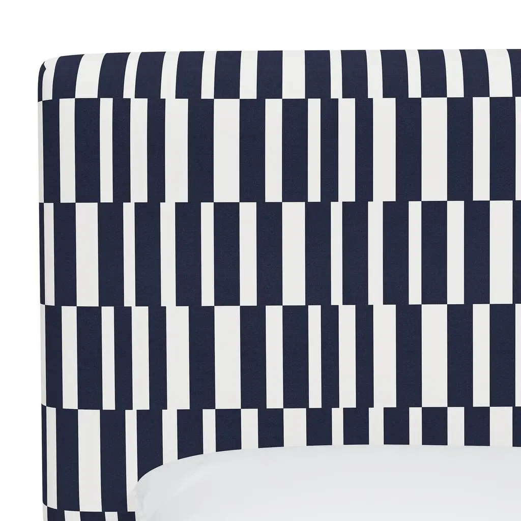 Exclusive to One Kings Lane: Mod stripes give this streamlined bed a dash of retro chic. The headboard's generous padding makes it ideal for anyone who likes sitting up to read or watch TV in bed.