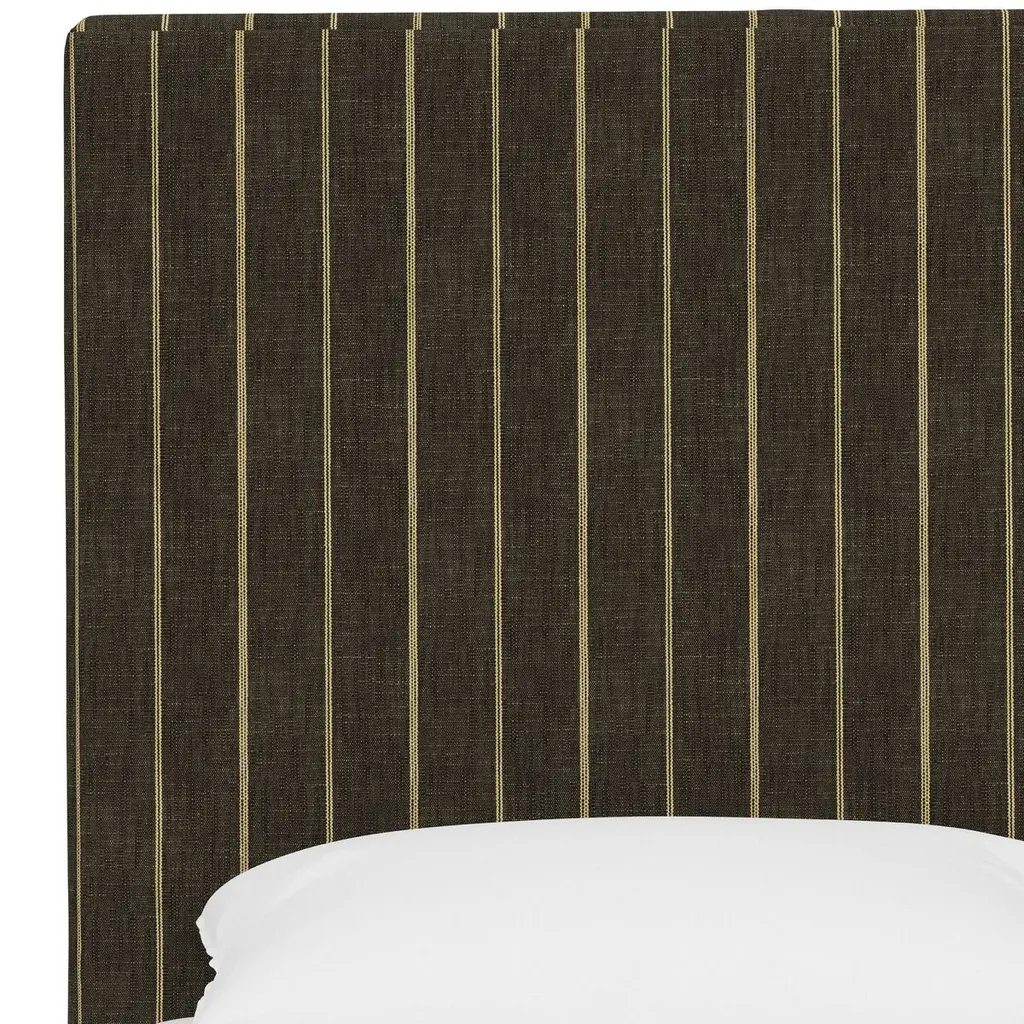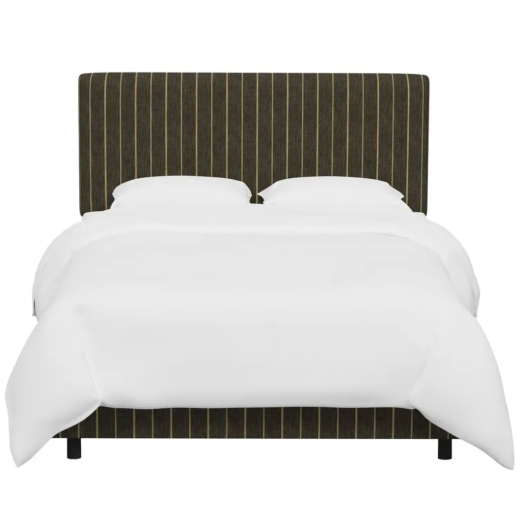 Embrace understated elegance with this bed frame, featuring clean lines that effortlessly complement any room decor. The padded headboard provides a comfortable support for reading or watching TV, upholstered in a stunning striped cotton-linen-blend fabric. Combining practicality with style, this handcrafted bed adds a signature touch to your space. Mattress and box spring required (suggested box spring height is 9”), ensuring both comfort and style in your bedroom ensemble. Made in the USA.