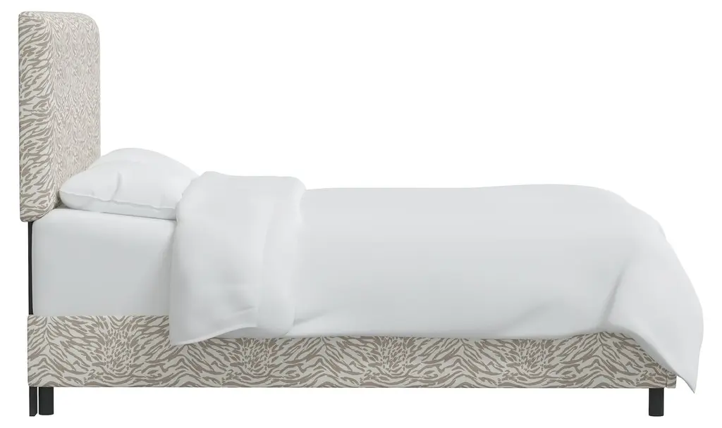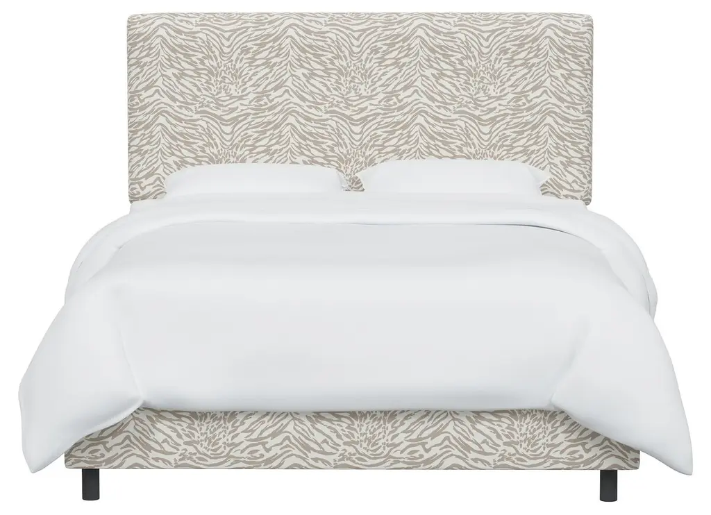 Exclusive to One Kings Lane: Tiger-print upholstery brings timeless glamour to this clean-lined bed. Made in the USA, the bed includes a generously padded headboard provides comfortable support for reading or watching TV in bed.