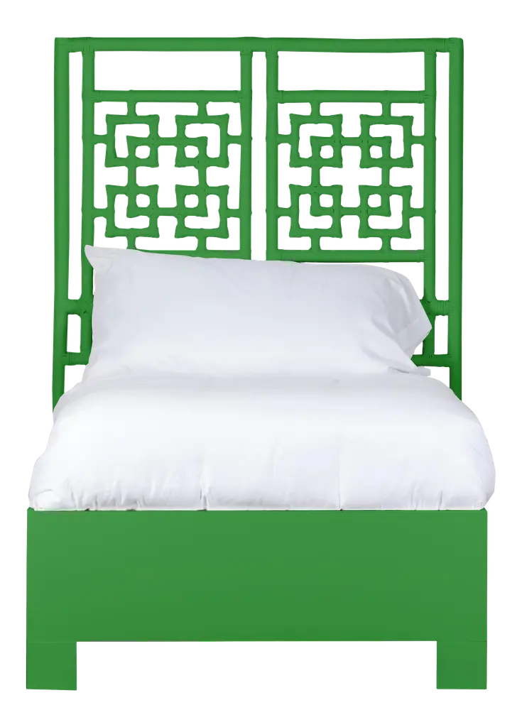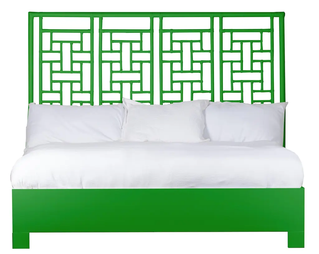 A timeless design, this classically styled bed features a Rattan headboard with a Maple Bed Frame. The Rattan headboard is hand-wrapped with Rawhide Bindings to add a beautiful contrast and strength. The Maple Bed Frame, which accepts a box spring and mattress, is built in the USA. The Rattan headboard easily attaches to the Bed Frame. Each bed is custom made and finished to order. This bed is an artistic centerpiece and will make a statement in any bedroom.