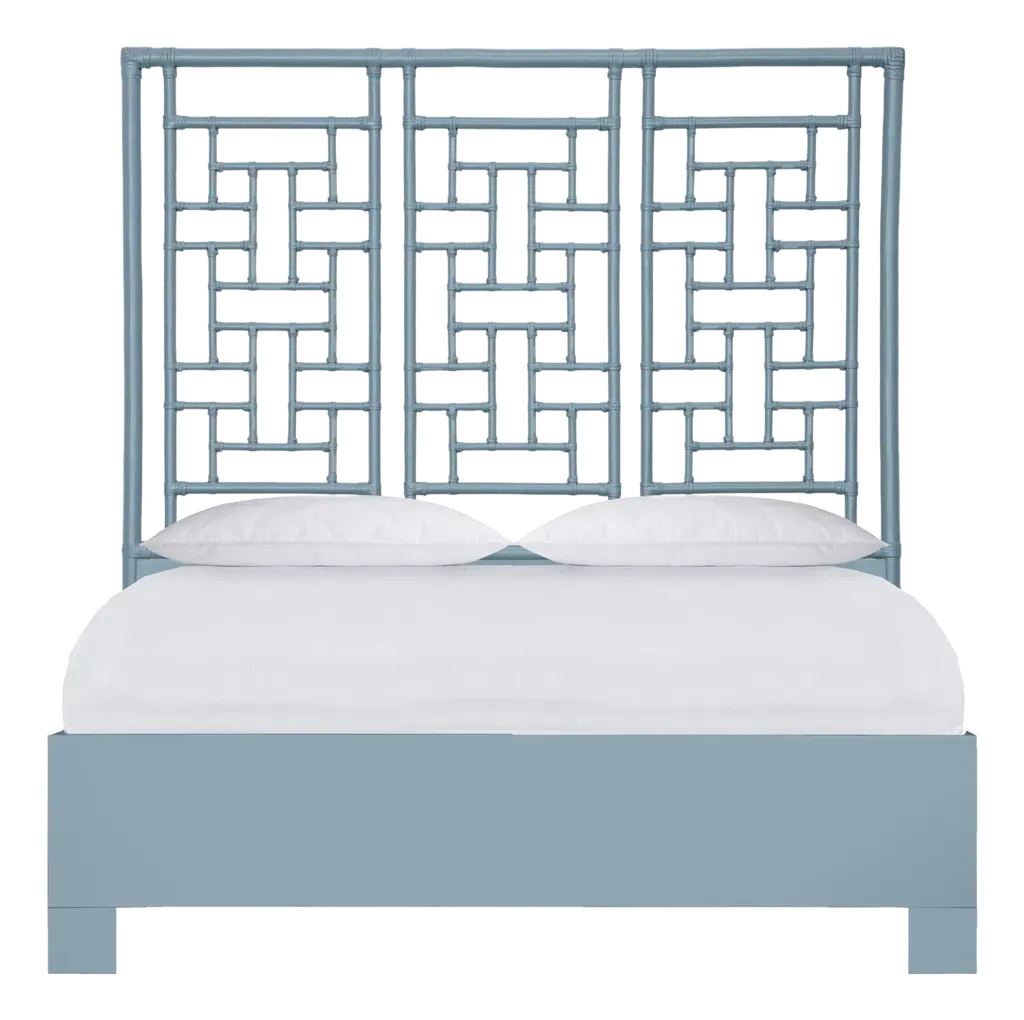 Transform your bedroom into a serene coastal retreat with the Ohana bed, a perfect blend of modern design and natural charm. Handcrafted from rattan, each joint is meticulously wrapped in leather for added durability and an artisanal touch, ensuring both strength and beauty. The standard maple bed frame is designed to accept a mattress and box spring. The simple yet modern design brings a relaxed, coastal vibe to your space while offering a distinctive reflection of your personal taste. This piece is made to order, so please allow time for shipping.