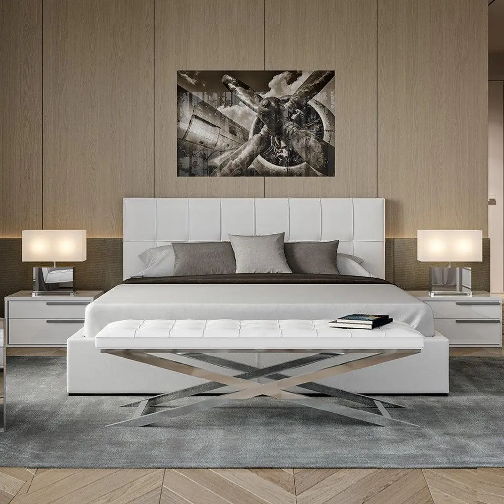You don’t have to compromise style for comfort with the Oliver Bed in White. Wrapped in white eco-leather, this bed showcases a top stitched, foam filled headboard for added comfort and style.