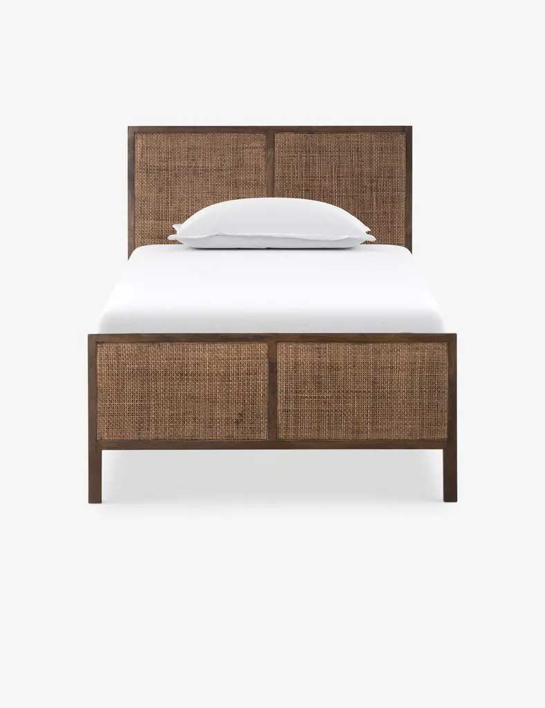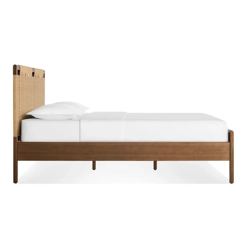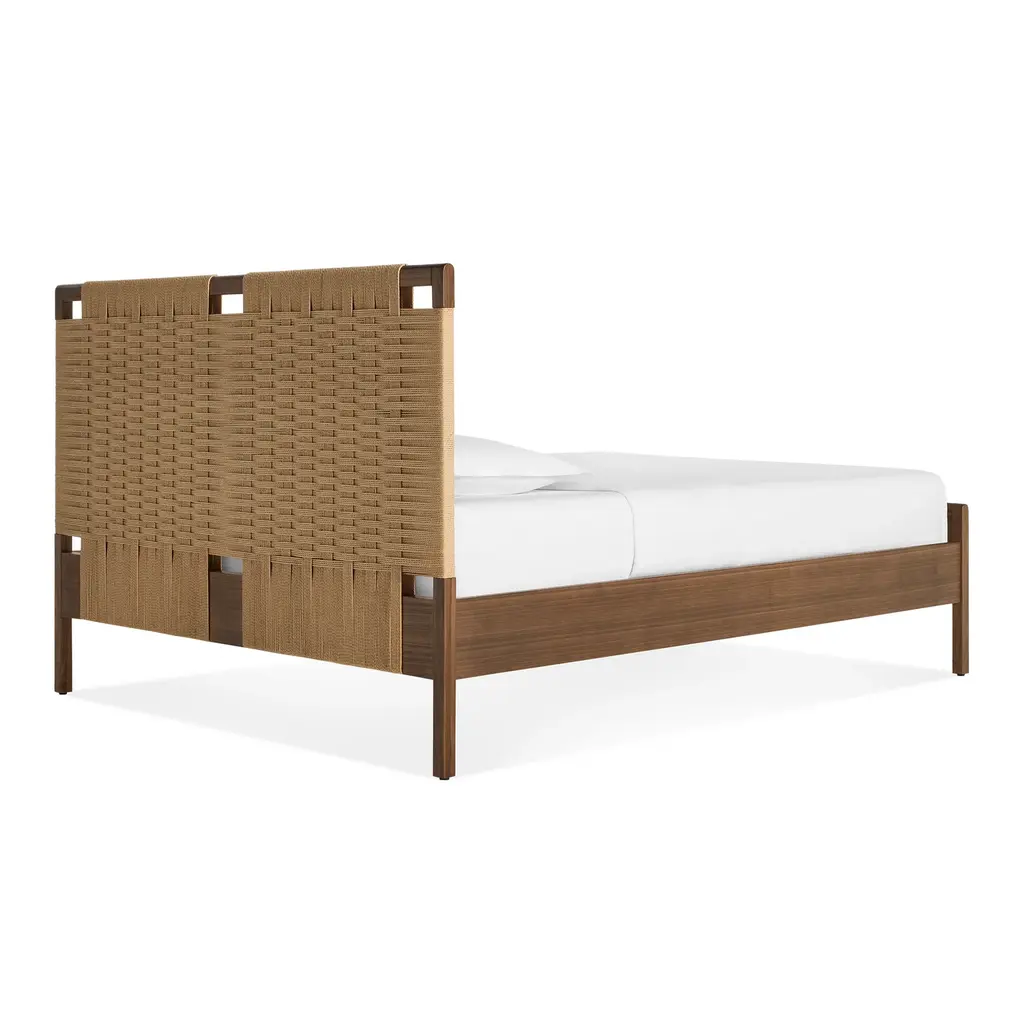 Good sleep is nothing to gamble with. Subtle curves, warm wood, and handwoven cord come together like a dream.