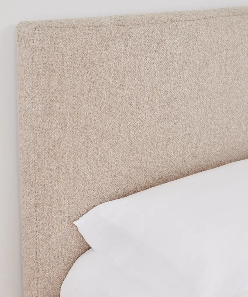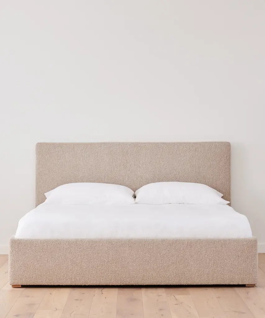 Pacific Bed Natural Wool Boucle Named as GQ Recommends—The Best Bed Frames for 2023. Iconic upholstered headboard featuring luxurious Belgian Libeco linen: 71% linen, 14% wool, 9% viscose, 6% polyester. Frame is kiln-dried for strength and durability. For furniture purchases, please refer to our furniture inspection policy here, and for help styling this piece in your space, contact [email protected] for a complimentary consultation. CA Residents: Prop 65 Information