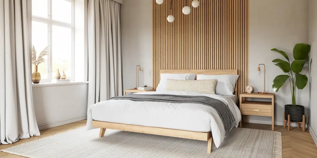 Sturdy wood construction meets airy lightness. Palder Bed features a low base that appears to float off the floor, with a slatted frame and headboard for an open look and ample airflow. A perfect foundation for comfort and serenity in your bedroom. Handcrafted and made to order in the US in your chosen size and wood finish.Crafted in your choice of beautiful, 100% solid hard White Oak, White Maple, American Walnut, or Black Oak. Solid wood slats are spaced to support the mattress while allowing ample airflow.