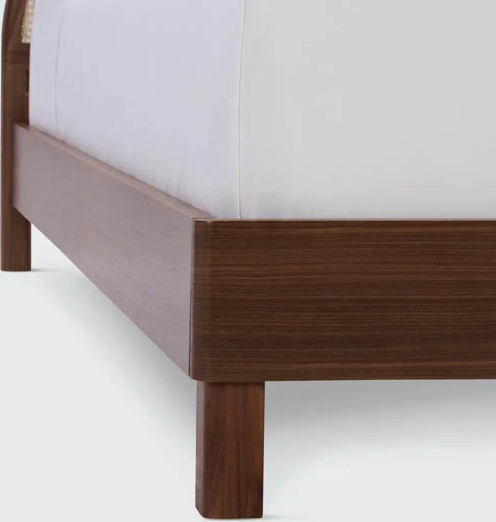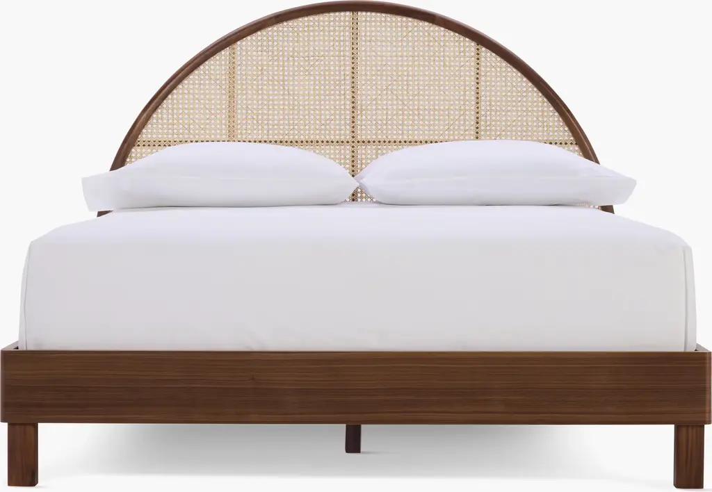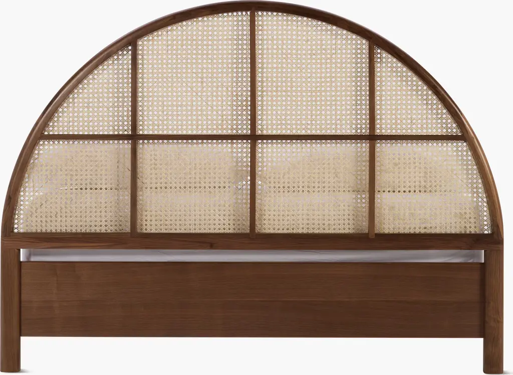 Dream up a beautiful bedroom with our exclusive collection of headboards and beds. The Palm Bed (2023) features a gracefully arched, wood headboard in oak or walnut that's hand-inlaid with cane for an airy, natural texture. The bed is finished with wood sides and solid legs in oak or walnut. Made in Vietnam.