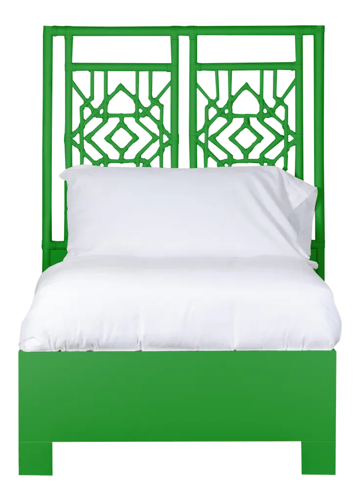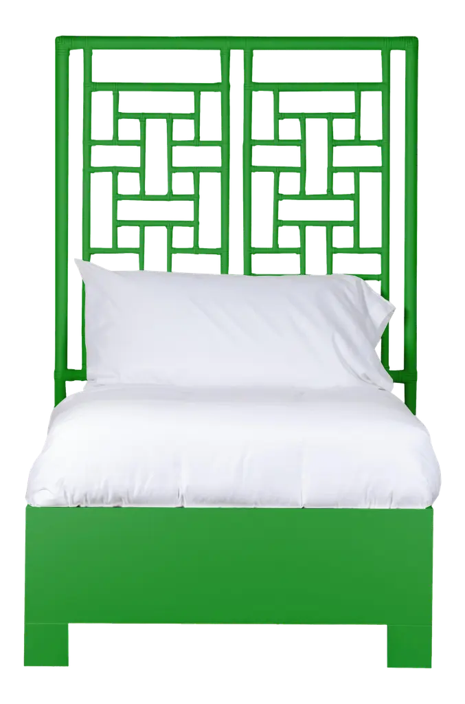 A timeless design, this classically styled bed features a Rattan headboard with a Maple Bed Frame. The Rattan headboard is hand-wrapped with Rawhide Bindings to add a beautiful contrast and strength. The Maple Bed Frame, which accepts a box spring and mattress, is built in the USA. The Rattan headboard easily attaches to the Bed Frame. Each bed is custom made and finished to order. This bed is an artistic centerpiece and will make a statement in any bedroom.