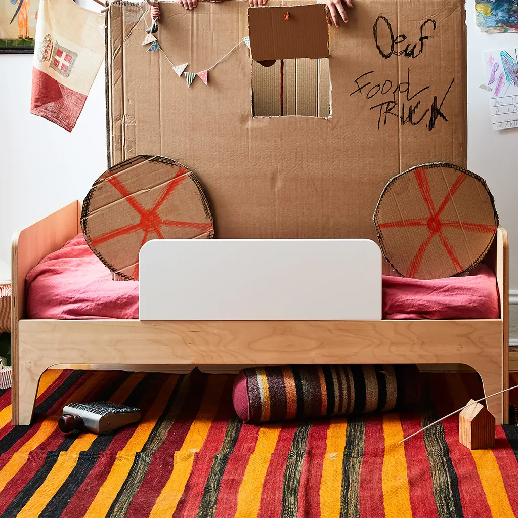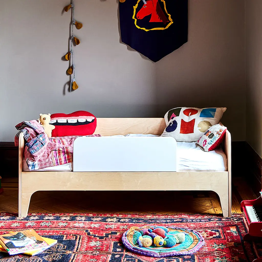 The Perch Toddler Bed from Oeuf elegantly bridges the transition from crib to proper bed, offering your child autonomy while ensuring safety. Meticulously crafted from sustainable Baltic birch plywood and eco-MDF, this refined sleeping solution allows little ones to climb in and out independently, fostering confidence. Its versatile design later transforms into a sophisticated daybed or sofa by simply removing the security rail—an investment in both present comfort and future functionality. Highlights:
