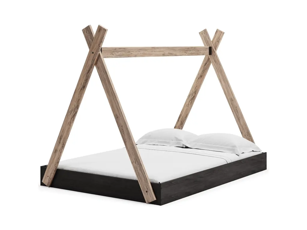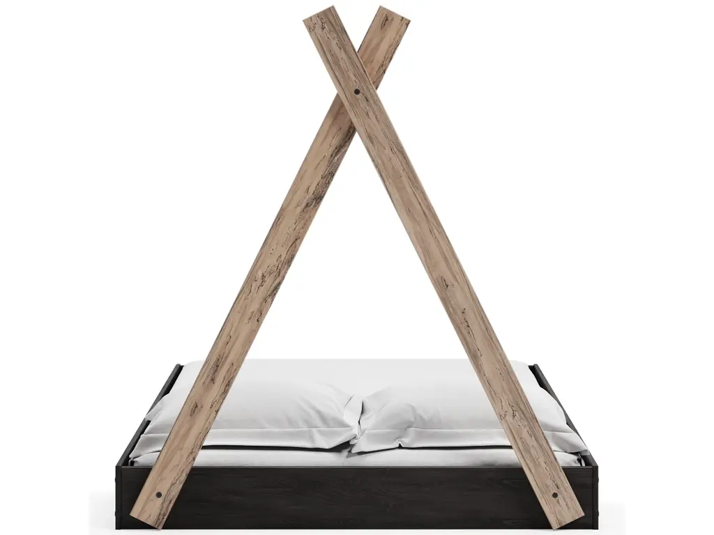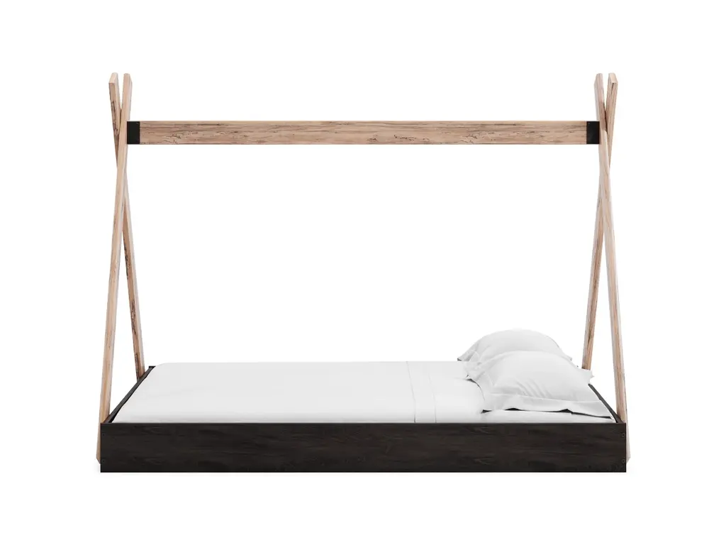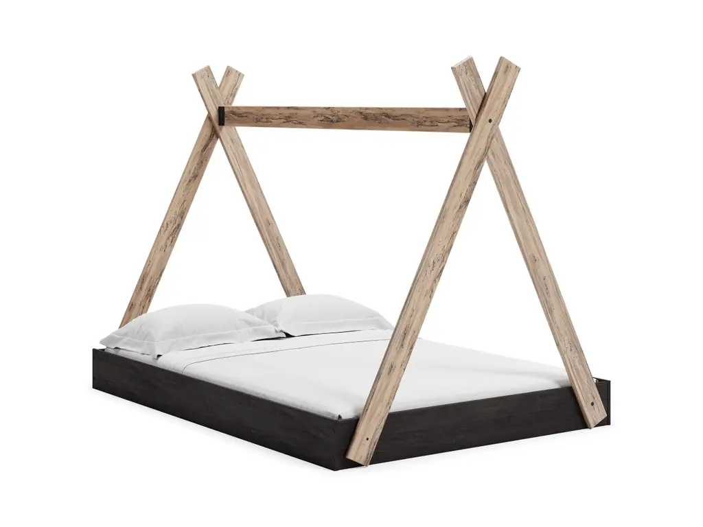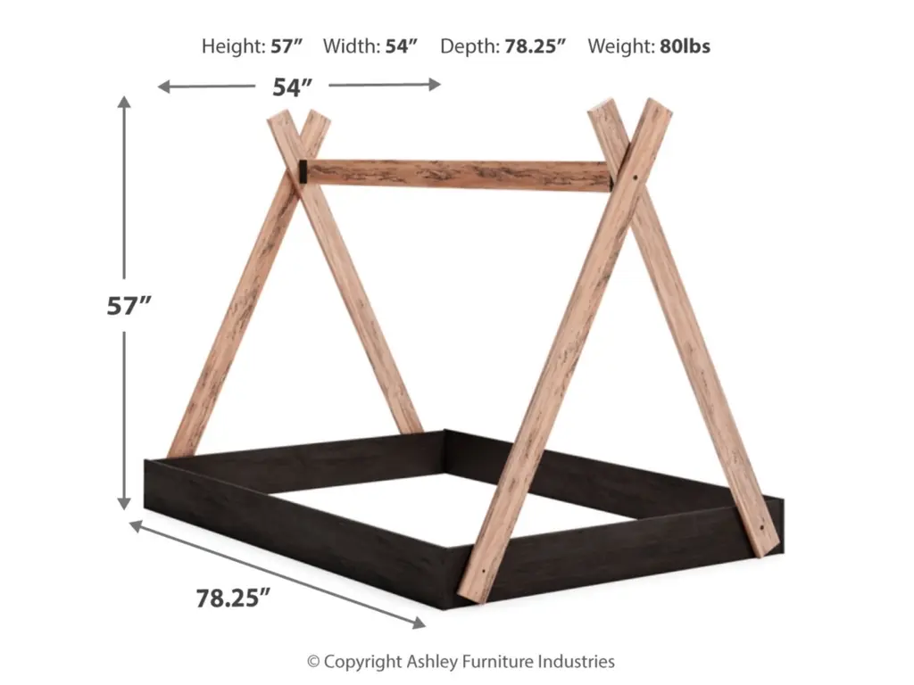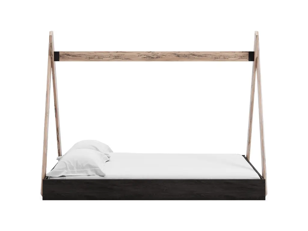 Adventure awaits with the Piperton full tent complete bed in a box. An effortless blend of contemporary and casual style, it features an expressive two-tone look, with a dark charcoal finish over replicated oak grain with an authentic touch and a replicated sugarberry wood grain. This complete bed in a box requires no additional foundation, making it a functional yet unique addition to your home.