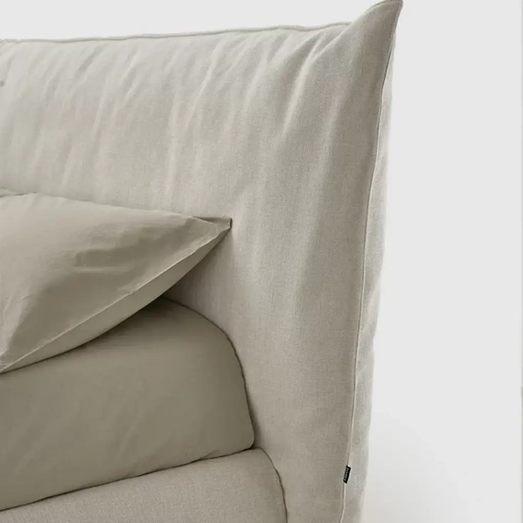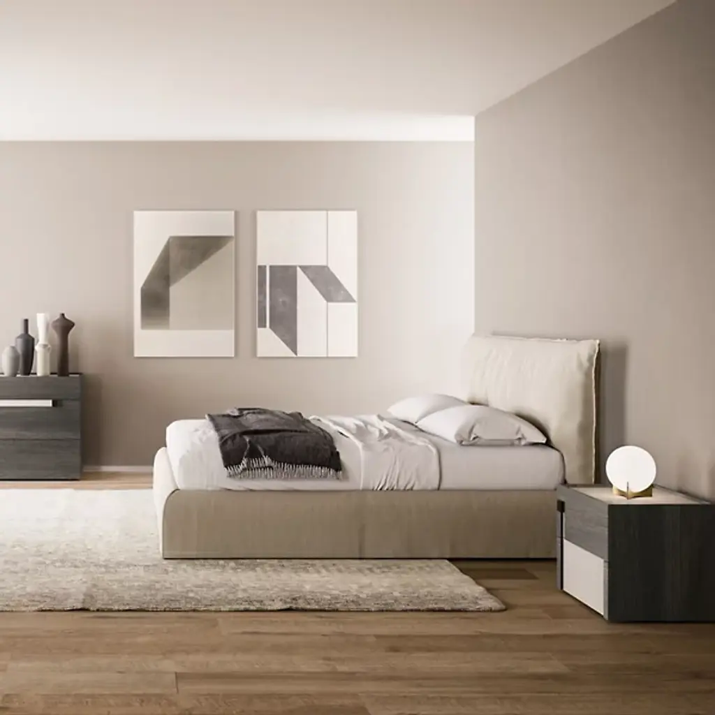 Layer on the back and head support with the playful, cozy design of the Piumotto Bed from Pianca. Creator Andrea Castrignano brings a psychological approach to design centered on one’s well-being. Here, Castrignano recognizes the welcoming nature of the pillow and makes it a point of focus. The headboard suggests a classic pillow as a pointy form filled with lush feathers. The headboard and the base feature upholstery that enhances its comfort and style. This base stands with a low profile, creating a balanced, restful silhouette with a mattress placed on top.