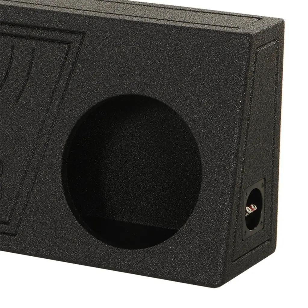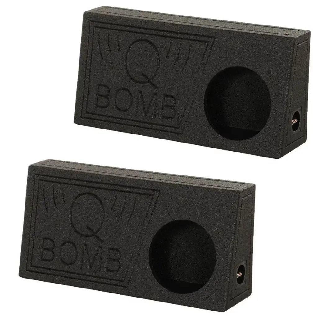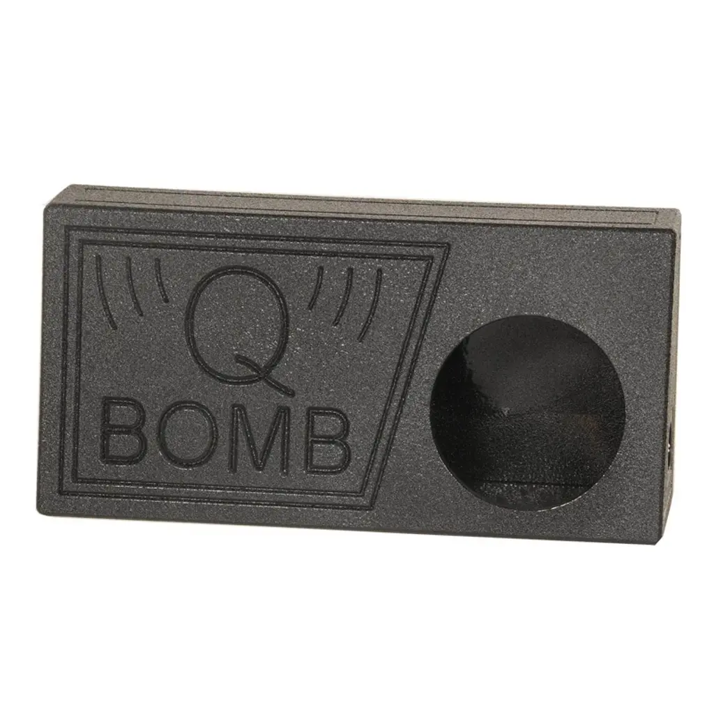 The Q Power QBomb 10 inch single vented subwoofer box is designed to fit behind your truck seat and enhance the bass of your 10 inch subs. The vented sub box is finished with a black bedliner spray for increased durability and added style. It features a solid 0.75 inch MDF construction, terminal cup connectors, 1.17 cubic feet of air space, and a mounting depth of 5 inches. If you are looking to really make the bass bounce, then turn your ride into a sound machine with the Q Power 10 inch subwoofer box.