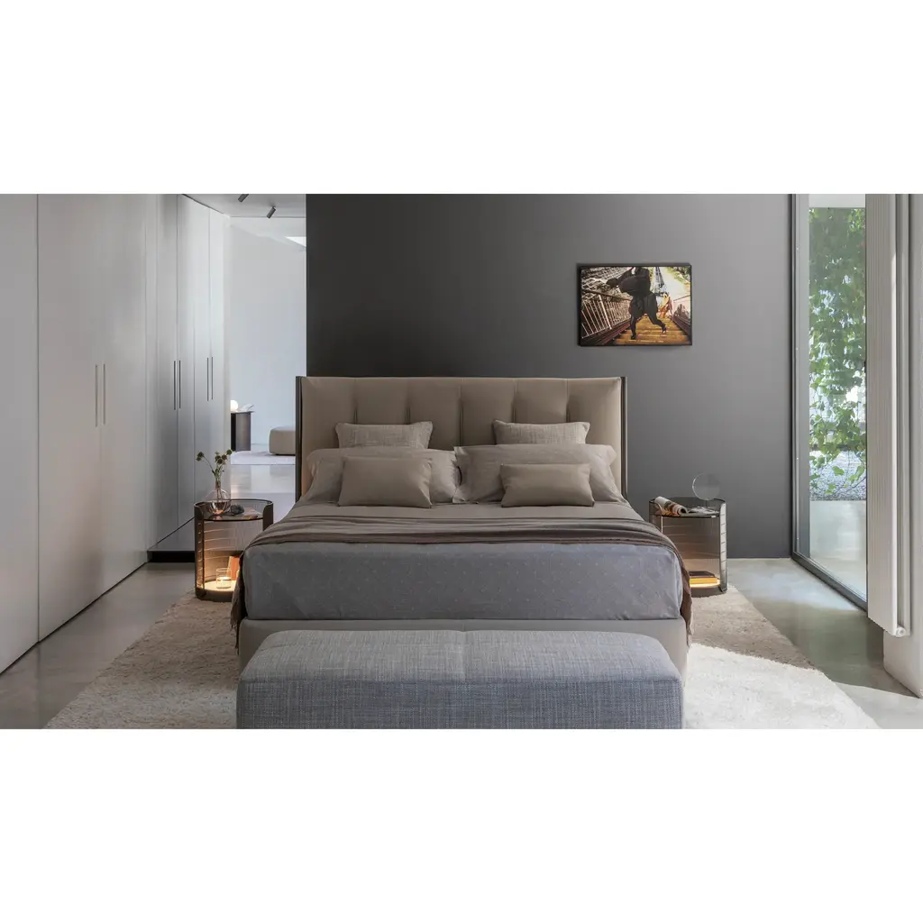 Experience loyalty and love in your sleep with the Quilted Slimline Queen Bed by Flou Koi. The Japanese-inspired design combines softness and generosity, while the clean, sharp lines and eye-catching metal frame exude discreetly charming luxury. With vertical quilting and a choice of a slatted base or storage, this bed is both welcoming and sophisticated.